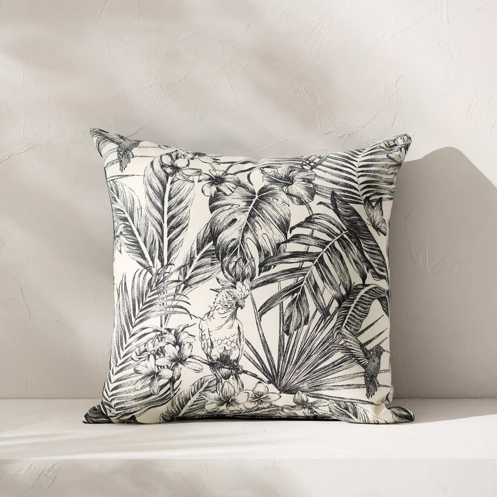 With its foliage and black parrot motifs on a beige background, this cushion in a luxurious, high-quality fabric will add a chic, exotic touch to your outdoor décor.