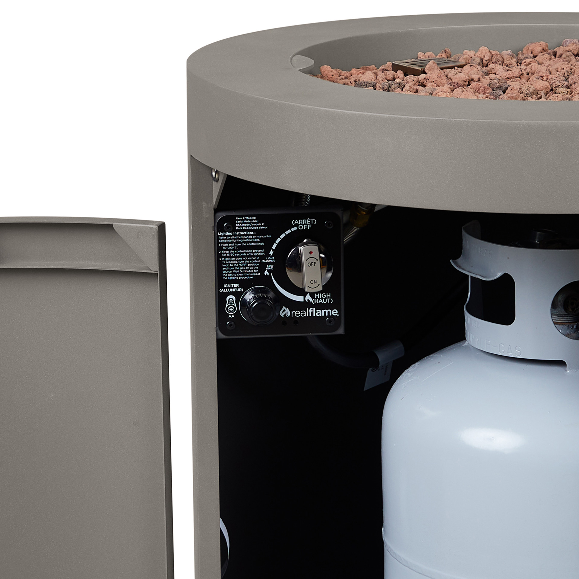 Made of durable steel with a lightly textured finish, there is room within the base of this modern fire table to conceal a 20 lb propane tank. This means you can maintain a clean, sleek look without an exposed gas source or hose.