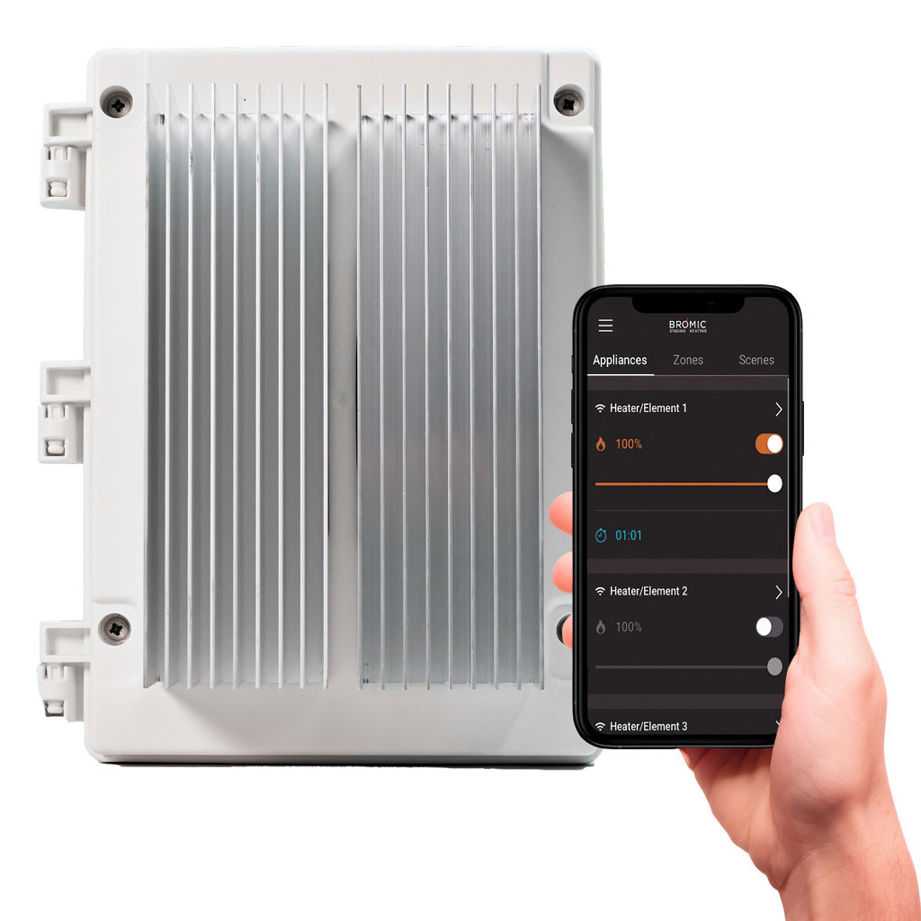 Enjoy custom comfort with the Affinity Dimmer Series. Suitable for Bromic Platinum and Tungsten Collection electric heaters, the Affinity Dimmer Series comes in 1 and 2 channel input options – with each channel controlling up to 6000W of power. Using the Bromic Heating app, instantly and precisely adjust heat output down to 1% increments and other unique scenes and settings for ideal outdoor experiences.