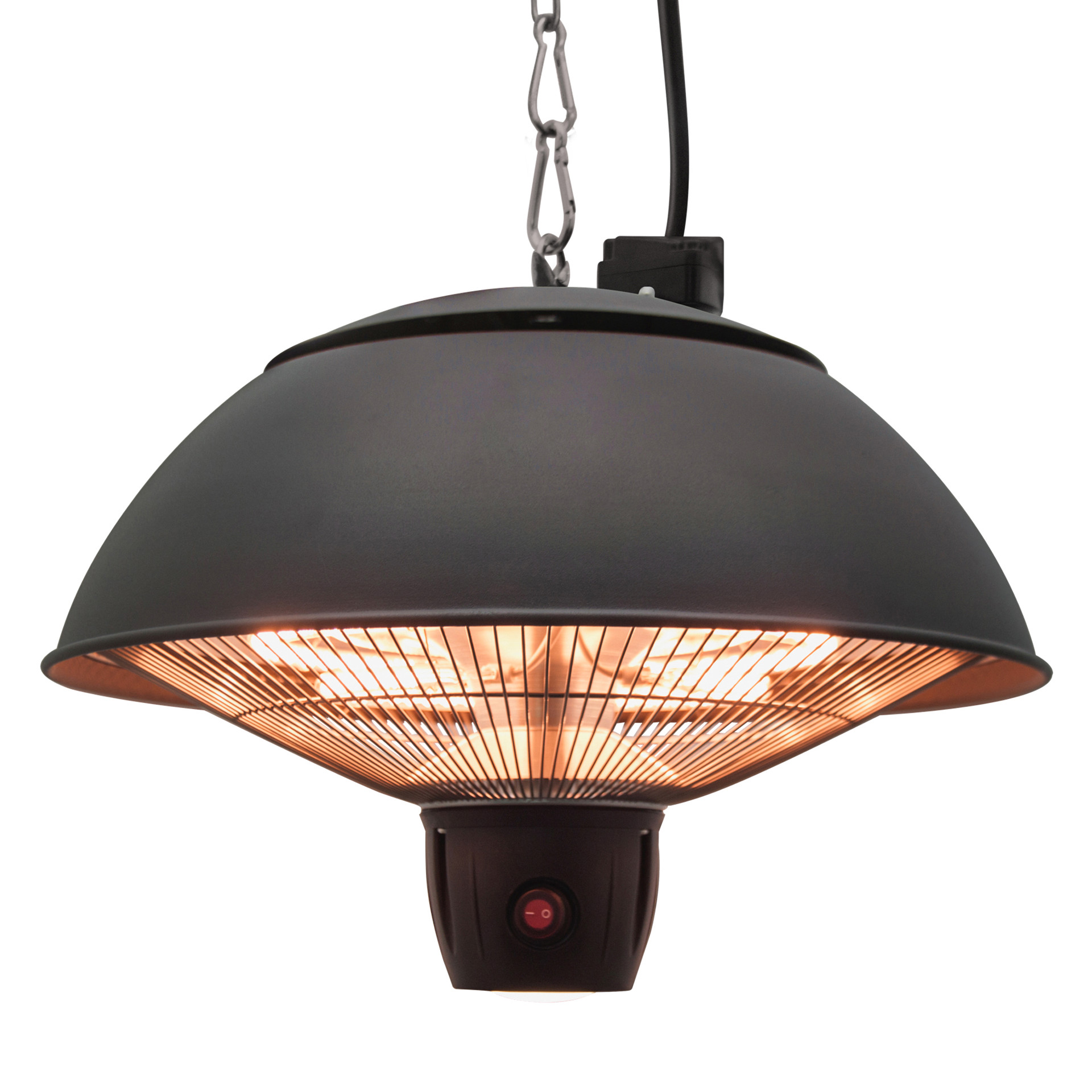 Installation is a breeze with the supplied chain and hook setup. A remote control comes included so you can pre-heat the zone before you go outside, or control the infrared heater without leaving your seat.