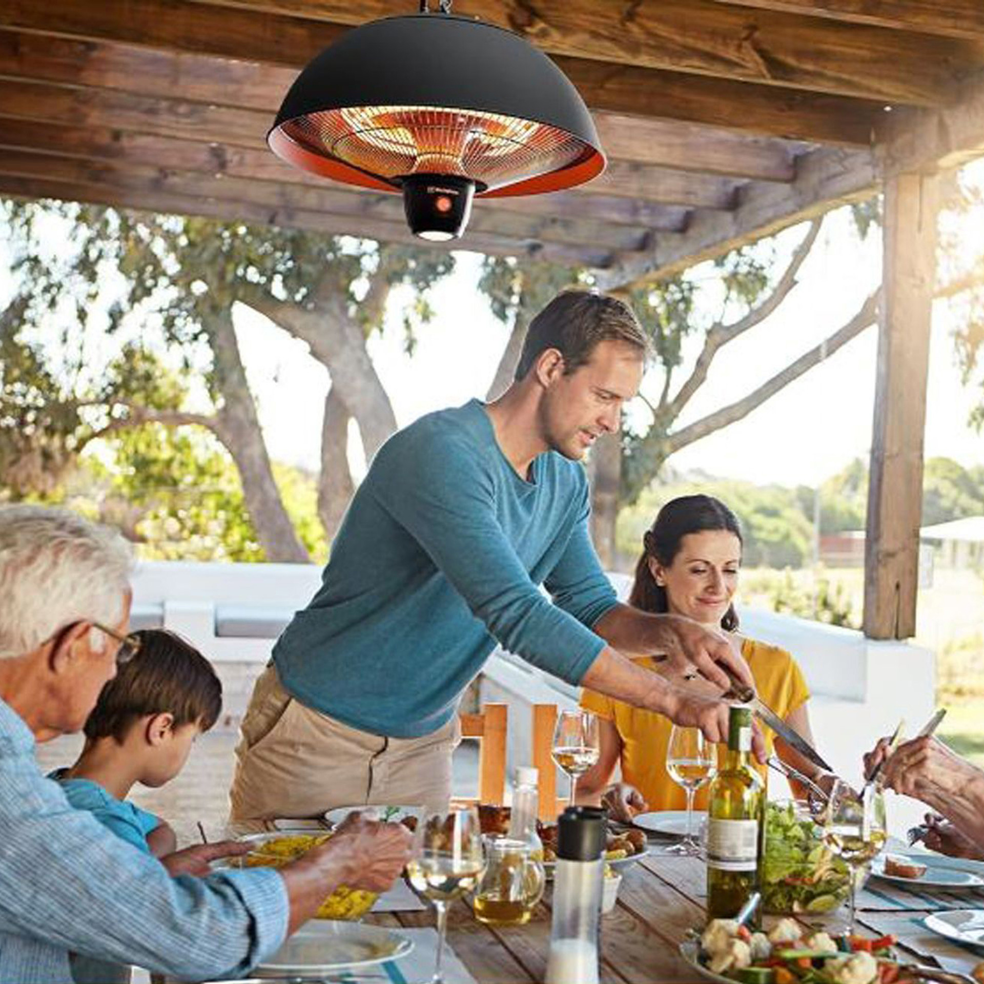 Keep warm and cozy outdoors with the Westinghouse Outdoor Electric Infrared Ceiling Heater!