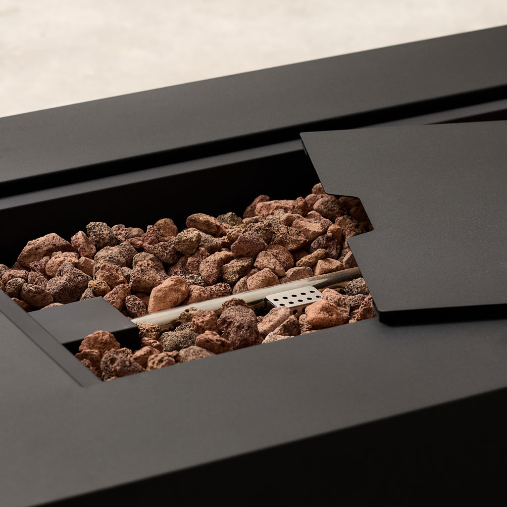 When not in use, transform this gas fireplace into a useful outdoor coffee table with the matching burner lid.