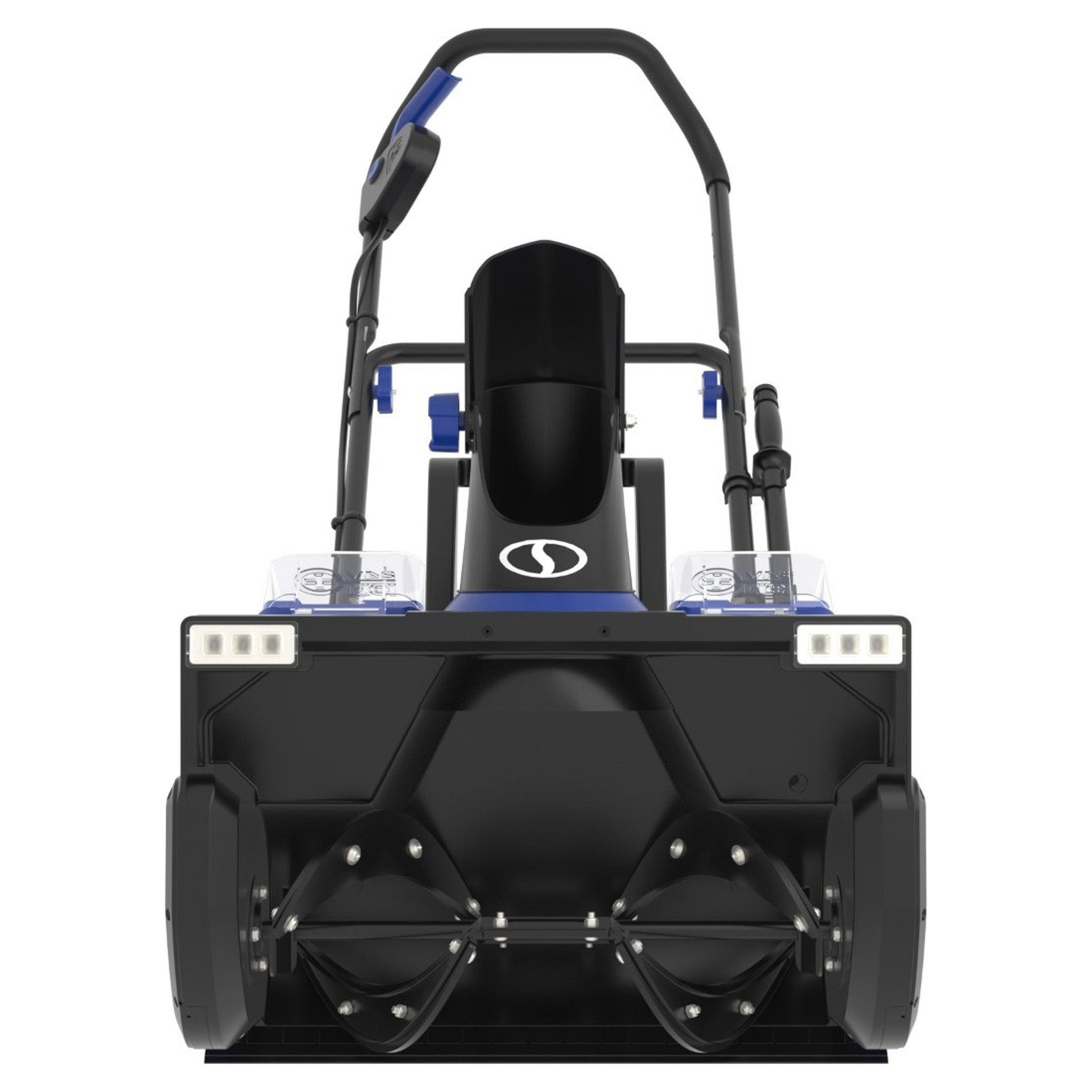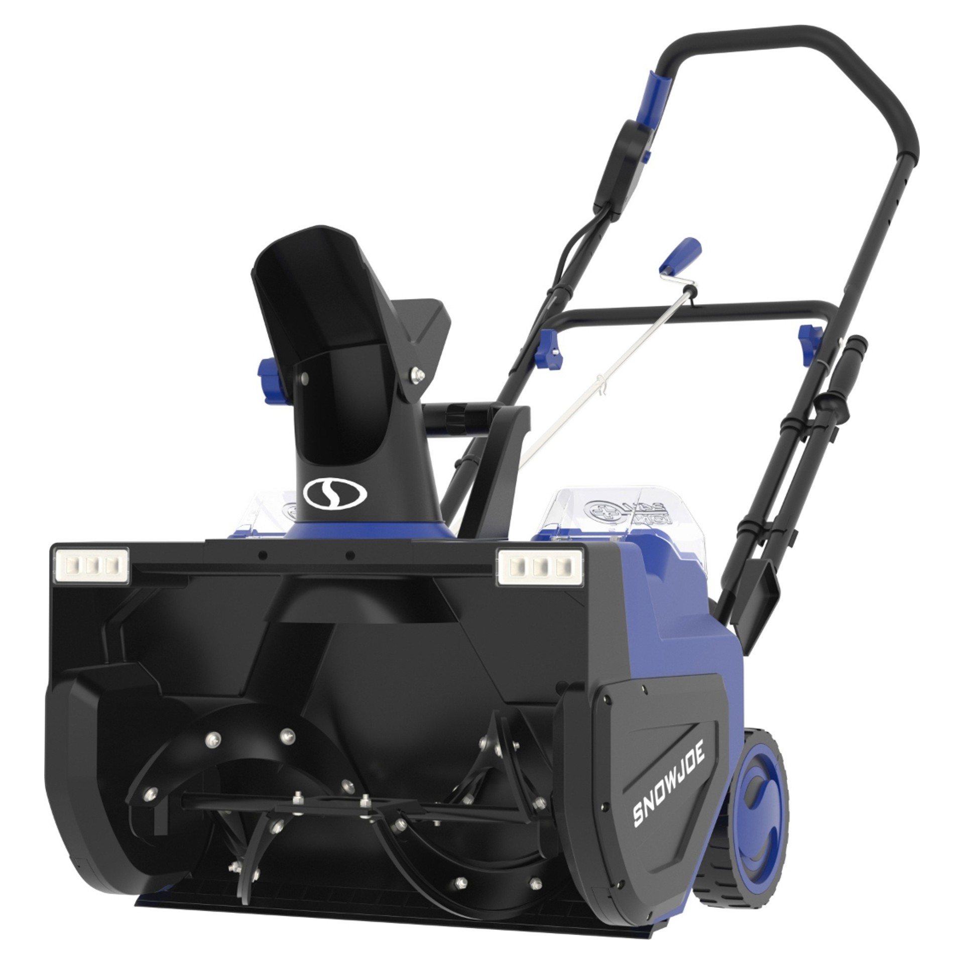 Completely cordless, SNOW JOE’s powerful 1600 W brushless motor moves up to 840 lbs of snow per minute, while the integrated scraper bar at the base clears snow right to the ground without damaging your deck, driveway, or pavement. At nightfall, the built-in LED headlights light the way for safer nighttime snow removal.