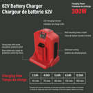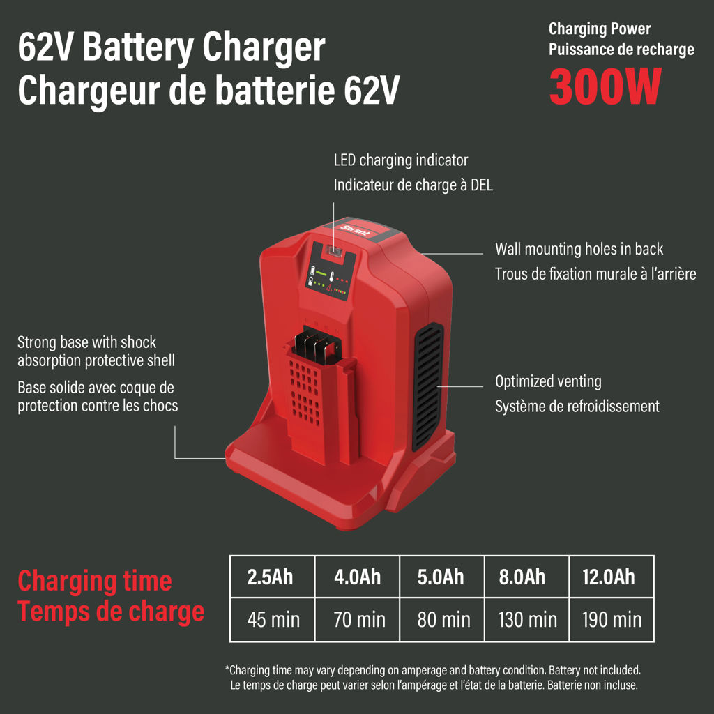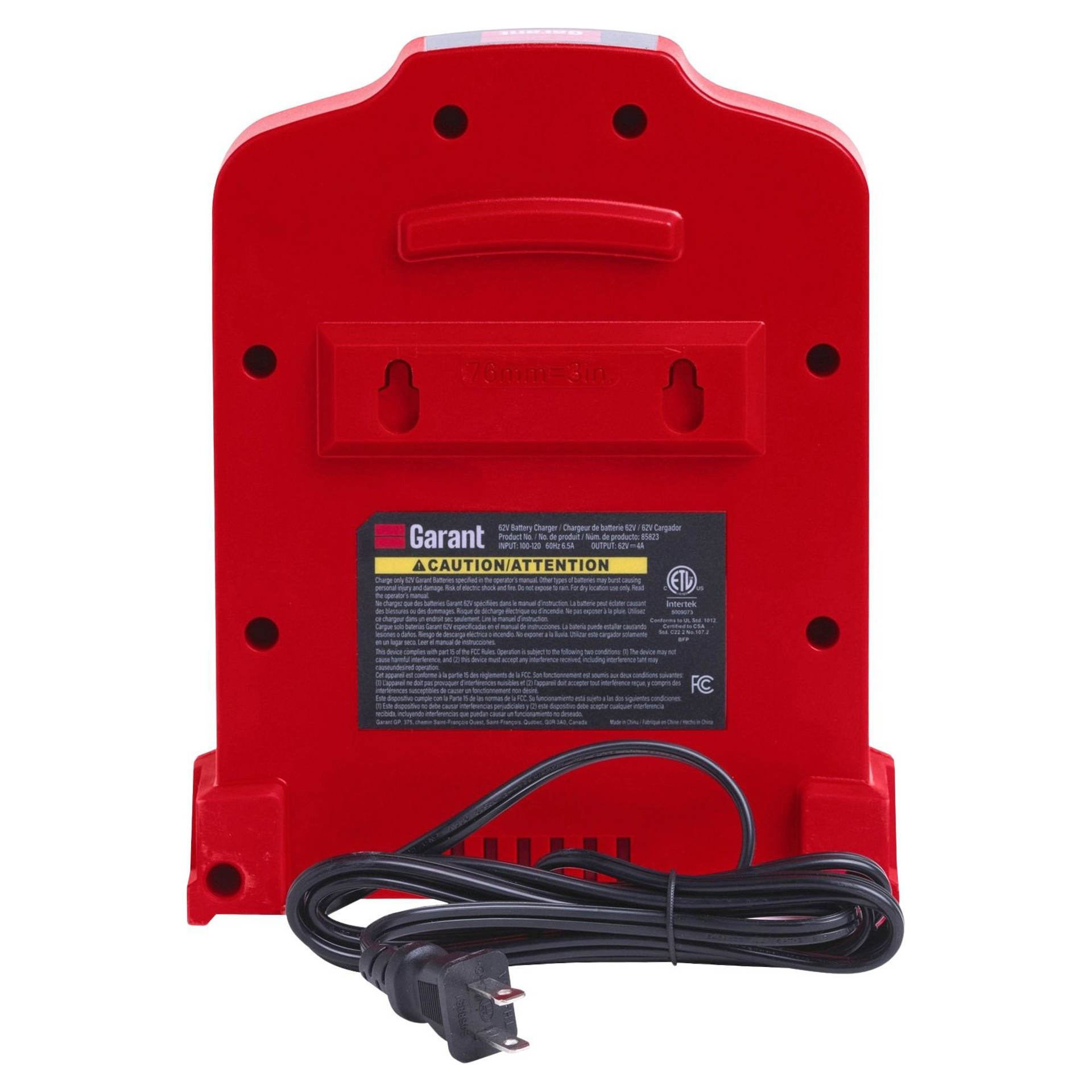 Compatible with all Garant 62V lithium-ion batteries, this charger provides consistent power to keep your tools ready whenever you need them.