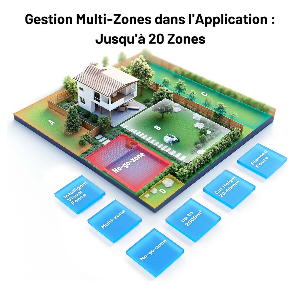 Easily manage up to 30 working zones via the Mammotion App. Create smooth transition paths between zones and define custom no-go areas for a fully tailored mowing experience. Its auto-recharge function ensures continuous operation, while the app lets you monitor your lawn anytime, anywhere. You can even create custom mowing patterns directly from the app.