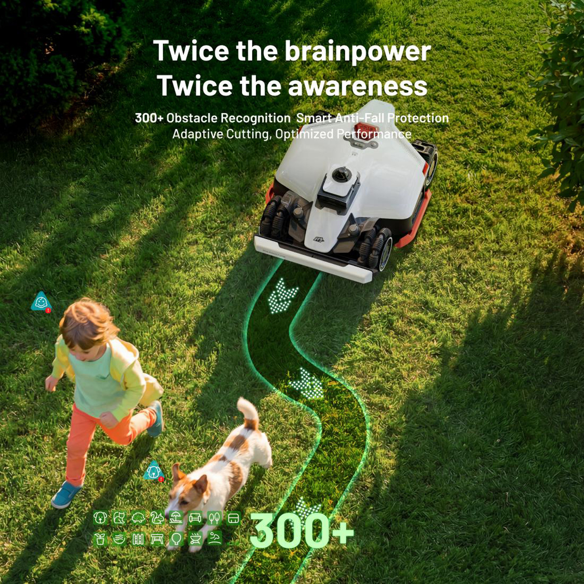 This technology delivers centimeter-level accuracy and allows the robot to efficiently avoid obstacles while optimizing its mowing path.