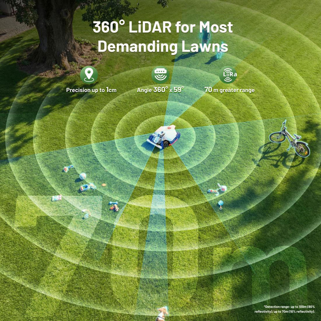 This technology provides centimeter-level positioning accuracy and allows the robot to efficiently avoid obstacles while optimizing its mowing path.