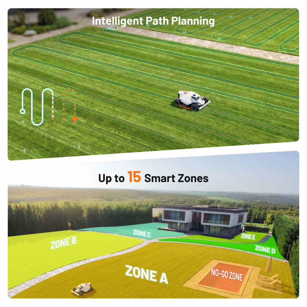 Control the mower remotely via a mobile app to schedule mowing sessions, manage multiple zones, and monitor its status in real time. This flexibility makes it ideal for large or complex residential properties.
