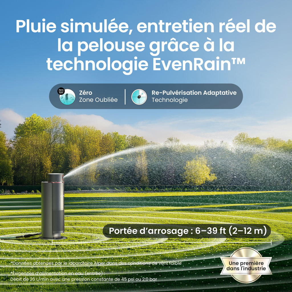 EvenRain™ technology ensures a natural, uniform water distribution with no missed areas, while the built-in rain sensor automatically pauses watering to conserve water and protect plants.