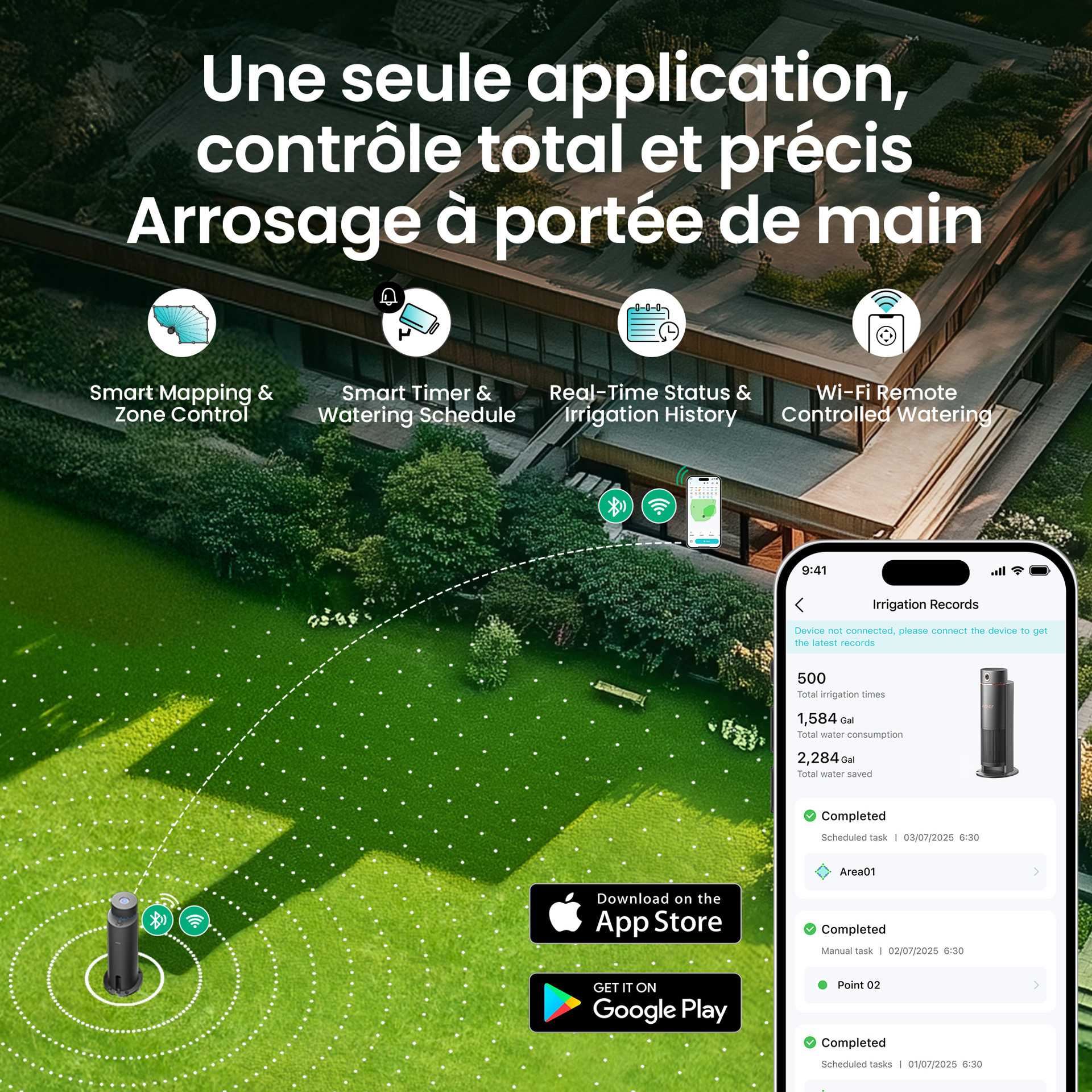 Effortlessly manage watering zones, schedules, and irrigation depth directly from your smartphone. Monitor watering duration, depth, and history in real time for a smarter, healthier lawn, at home or on the go.