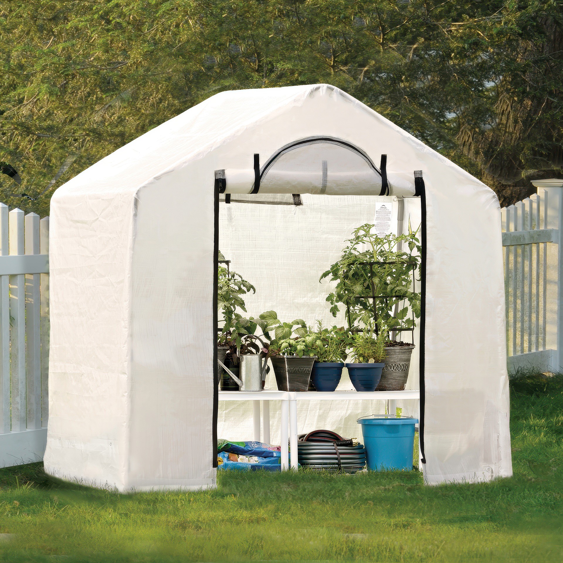 Grow quality plants faster with the GrowIT Backyard 6' x 4' x 6' 6" greenhouse - a great accessory for everyone from home gardeners to professional growers. This compact, durable and functional greenhouse will extend your growing season by allowing you to start seedlings earlier and protect plants from frost during the colder months. Whether you've been growing plants for years or are just getting started, the GrowIT Backyard Greenhouse is a great backyard growing solution. The GrowIT Backyard greenhouse features ShelterLogic's innovative Luminate diffusion fabric, which allows rapid cultivation due to its ability to retain heat and slow evaporation. Front and rear vents allow for better airflow and circulation. Includes: steel frame with welded T-connectors, one-piece 5 oz. Luminate Light Diffusion fabric cover, end vents, elastic straps to secure the cover, 2 sliding doors, four 15" auger anchors, complete hardware kit and easy instructions.