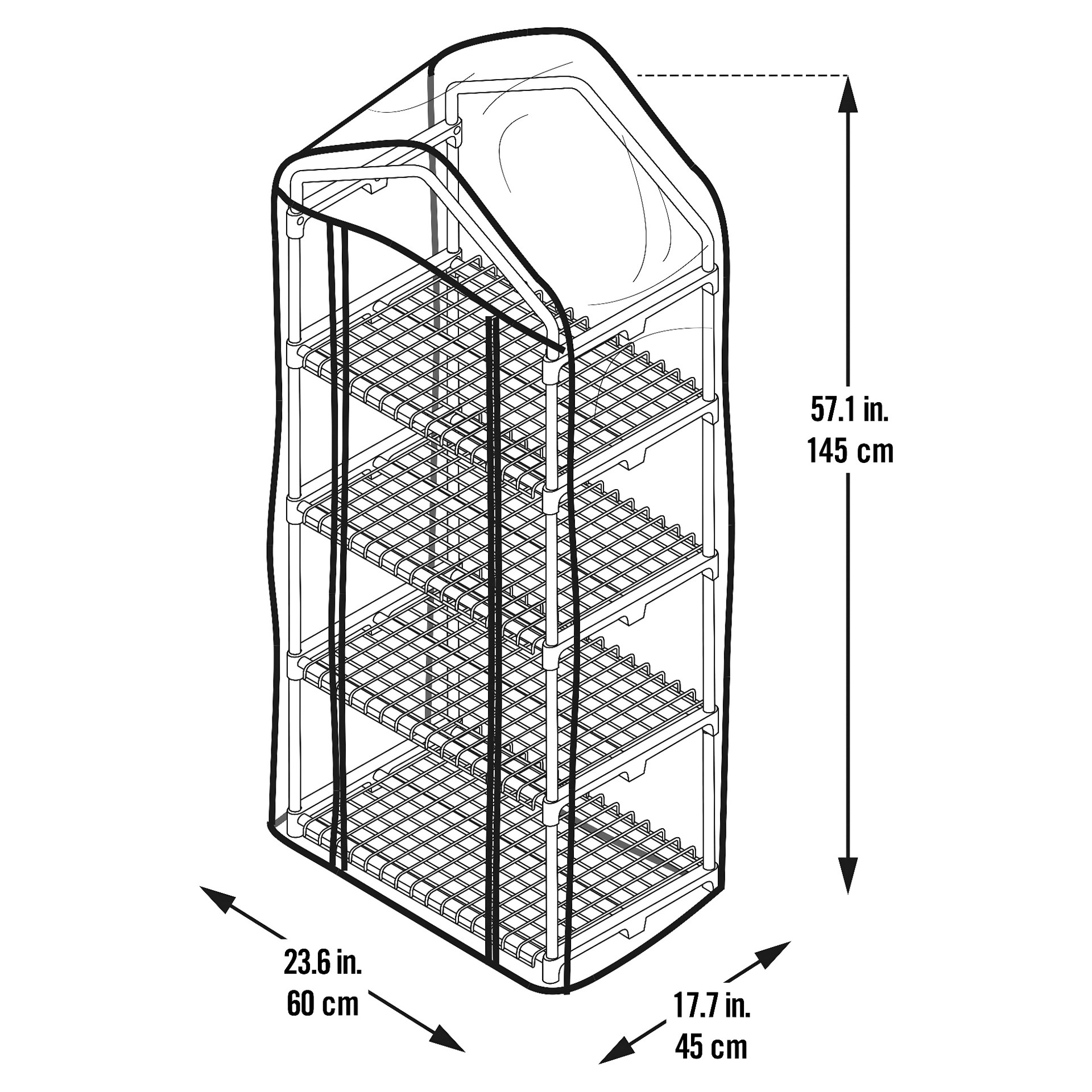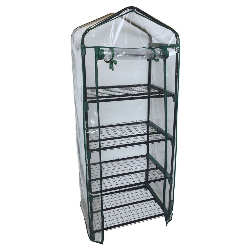 Start seedlings or extend your growing season with the GrowIT 4-Tier Mini Greenhouse. This compact, easy-to-assemble greenhouse is constructed with a high-quality tubular steel frame. The clear PVC cover allows an abundance of light in, while reducing the amount of harmful UV rays. This means less damage to plants and a reduction in fungi and pests. Includes: all-steel frame, mounted cover with frame, four steps, and instructions.