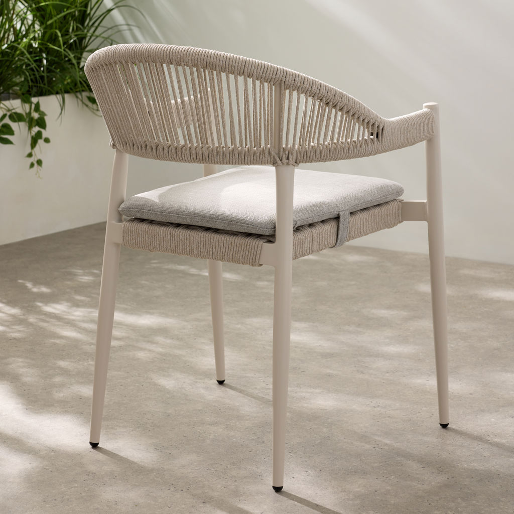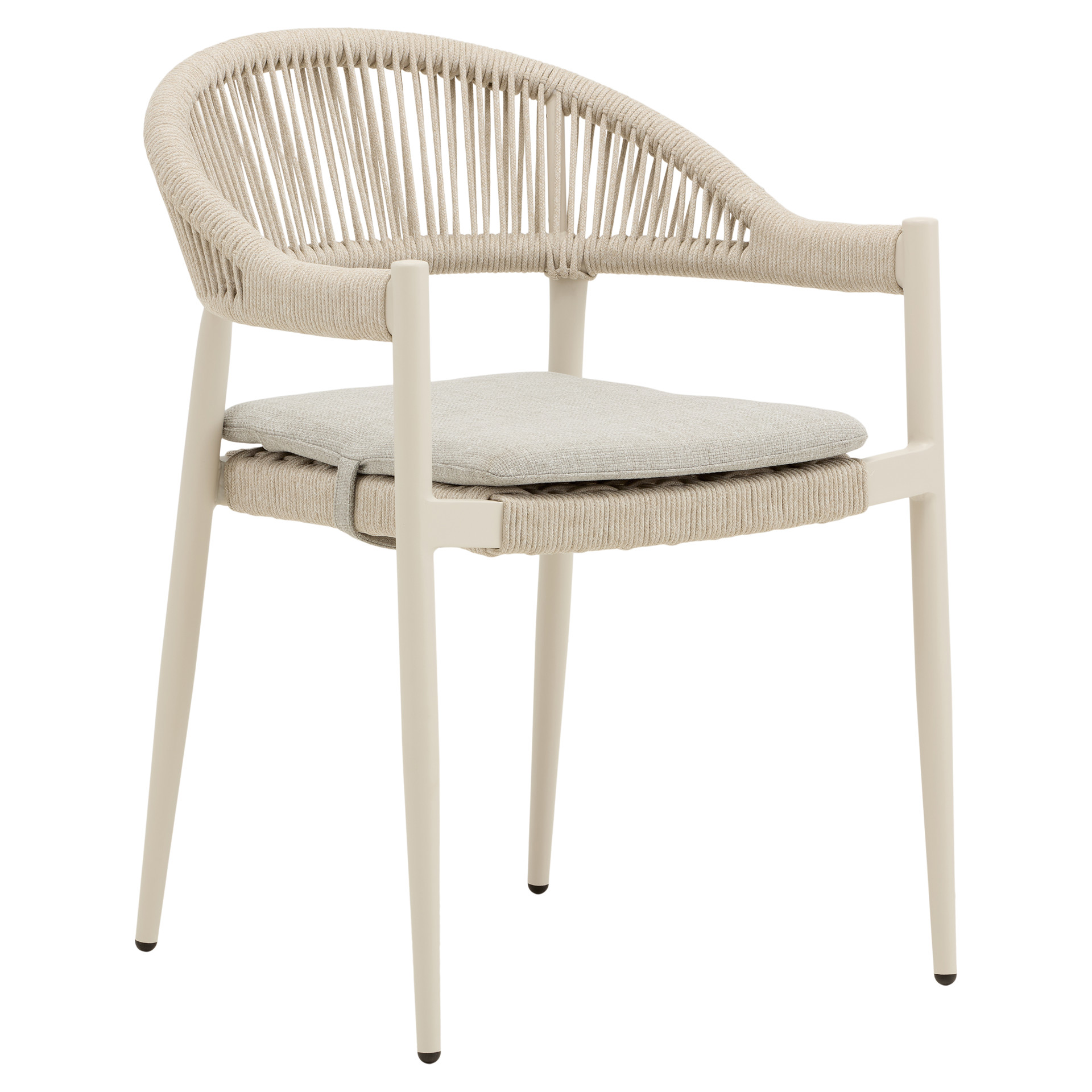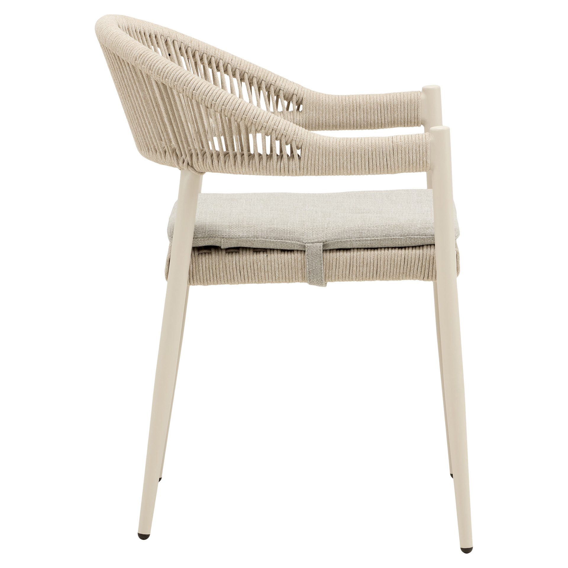 Add a modern touch to your outdoor space with these aluminum stacking chairs. The olefin rope detail adds an elegant touch to the furniture.
