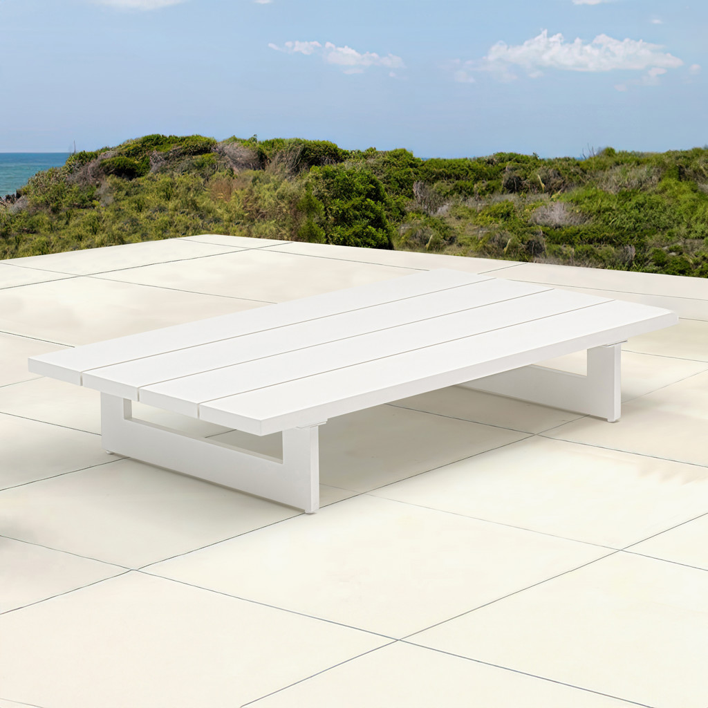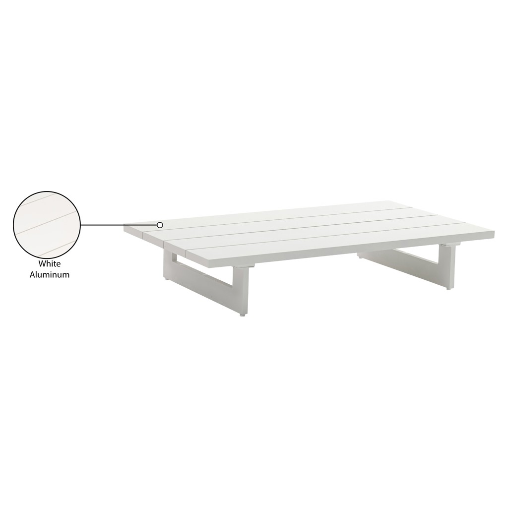 Part of a large collection that lets you mix and match modular pieces to get the look you crave most, this table is made from white aluminum, so it's sturdy, tough, and ready to face the elements with impeccable beauty, season in and season out.