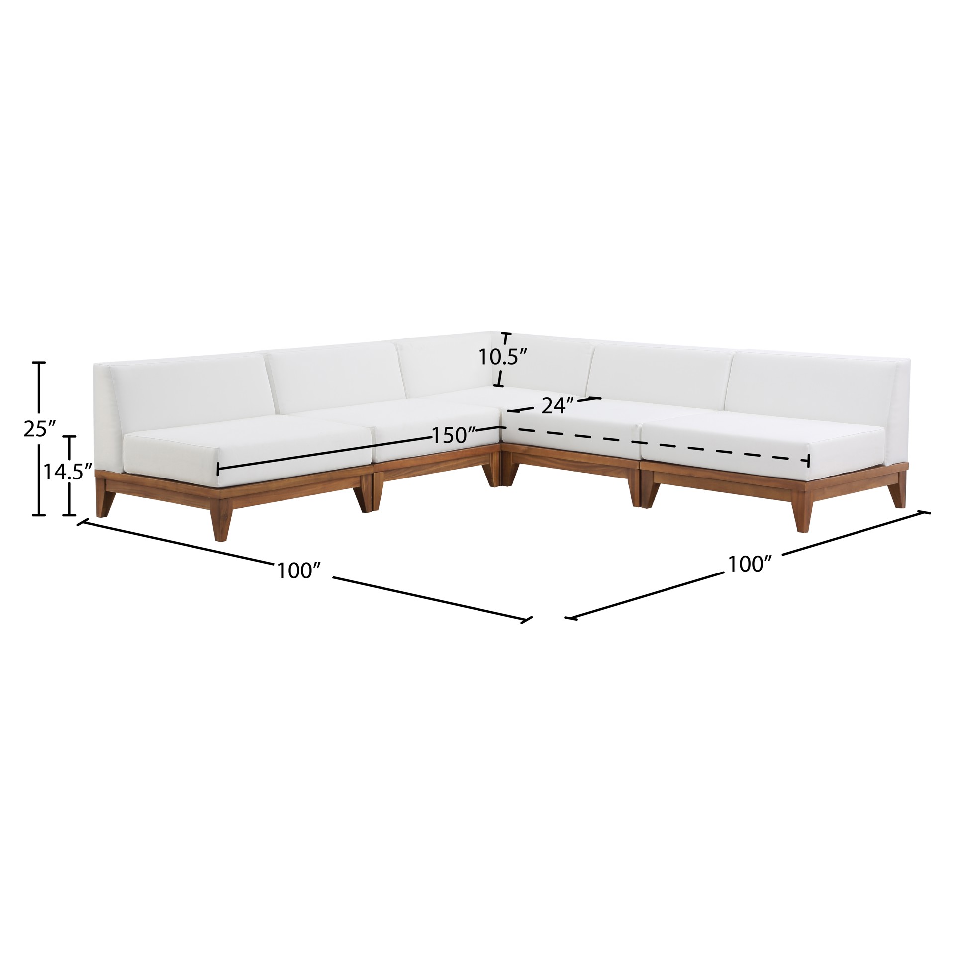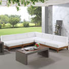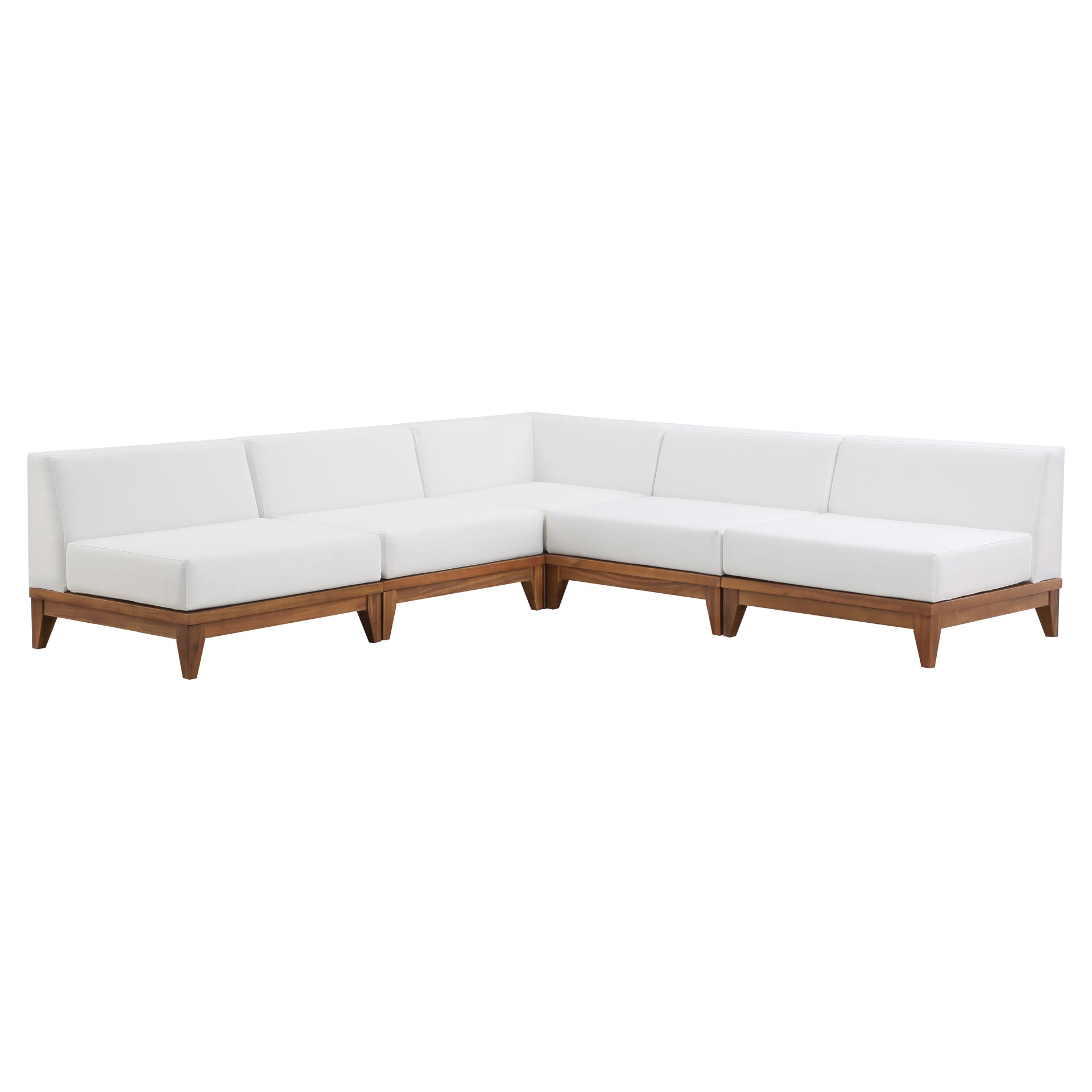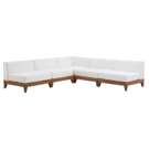 A solid acacia wood frame provides sturdy dependability for this sectional, ensuring its long-lasting performance and impeccable beauty. The plump cushions are encased in resilient water resistant fabric to keep them looking luxuriously beautiful for seasons to come. Attach other units in the collection to this sectional with convenient latches.