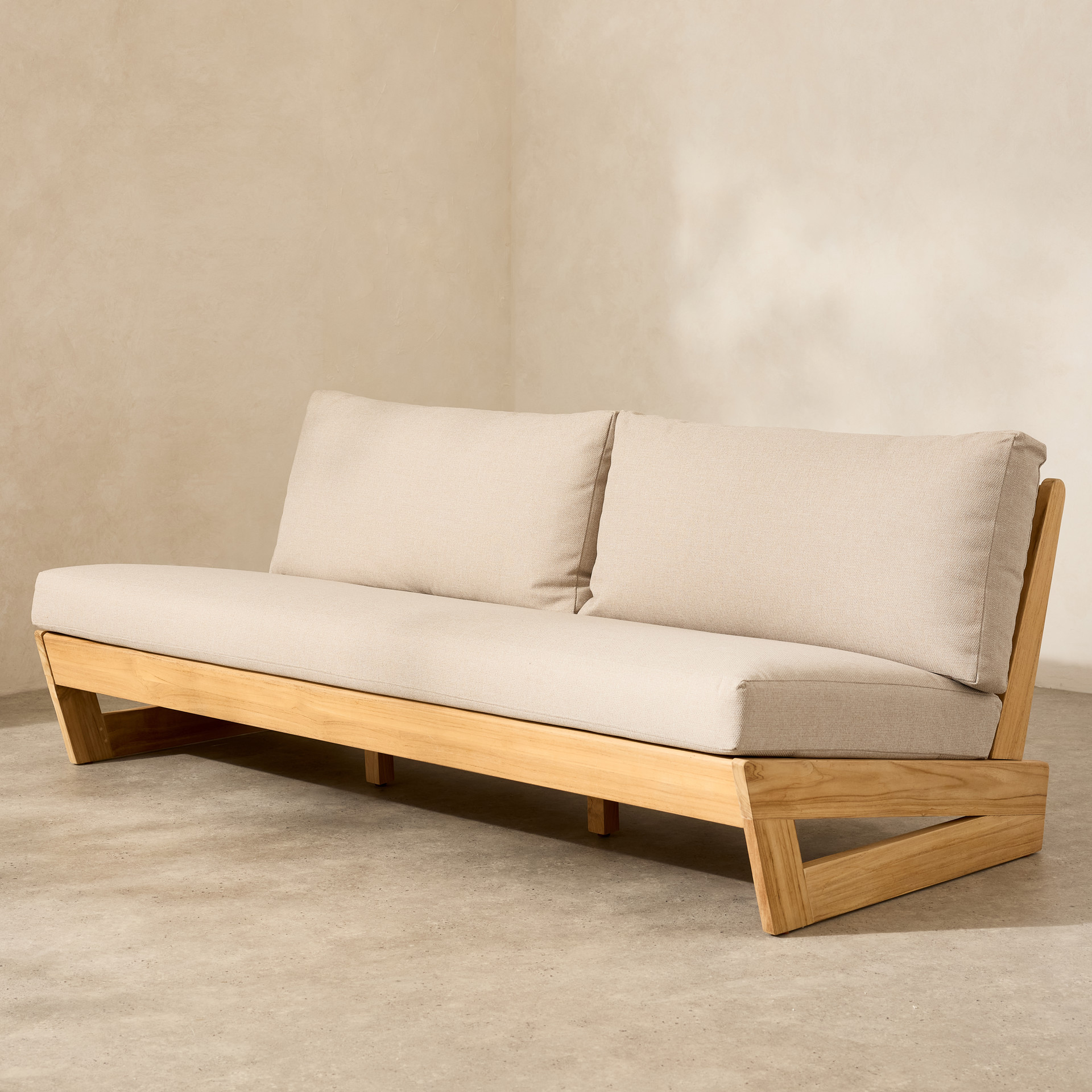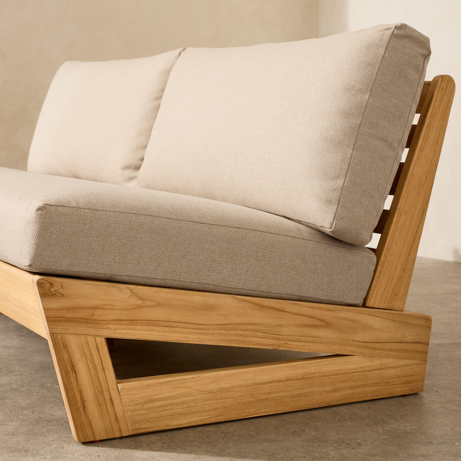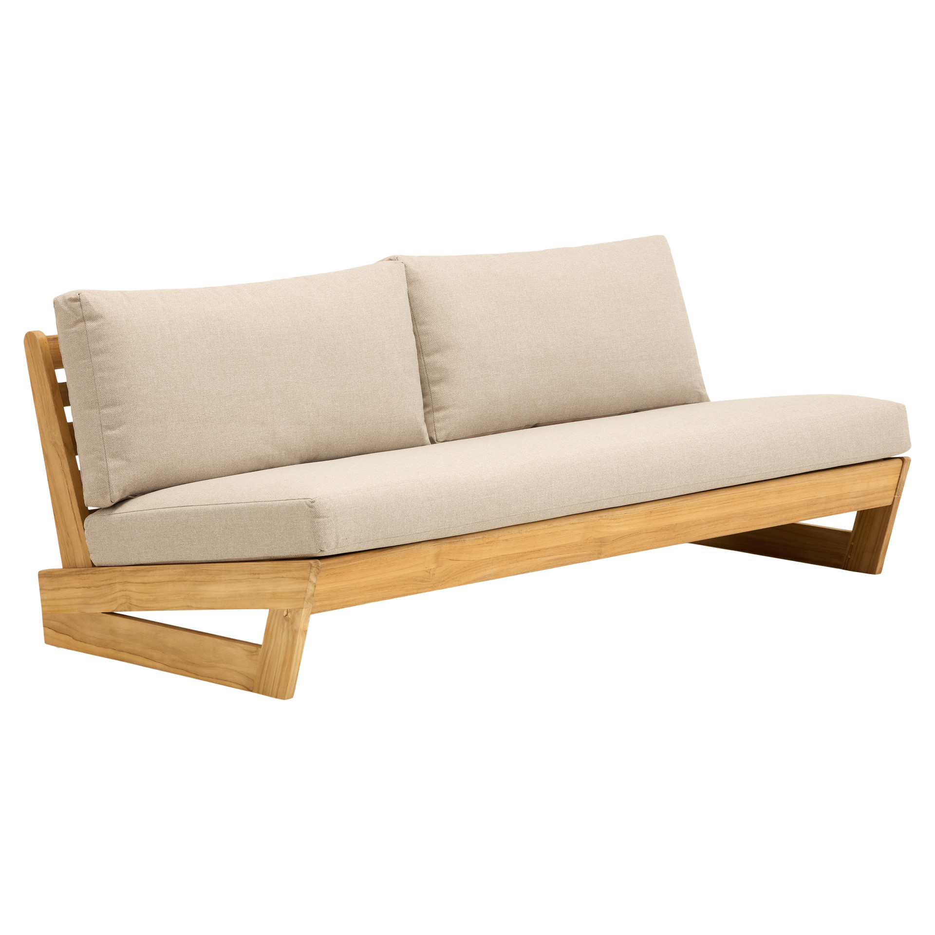 Create a warm and elegant outdoor retreat with this armless loveseat featuring a clean, minimalist design. Its structure highlights the natural beauty of wood, bringing a timeless and inviting touch to your patio, deck, or balcony.