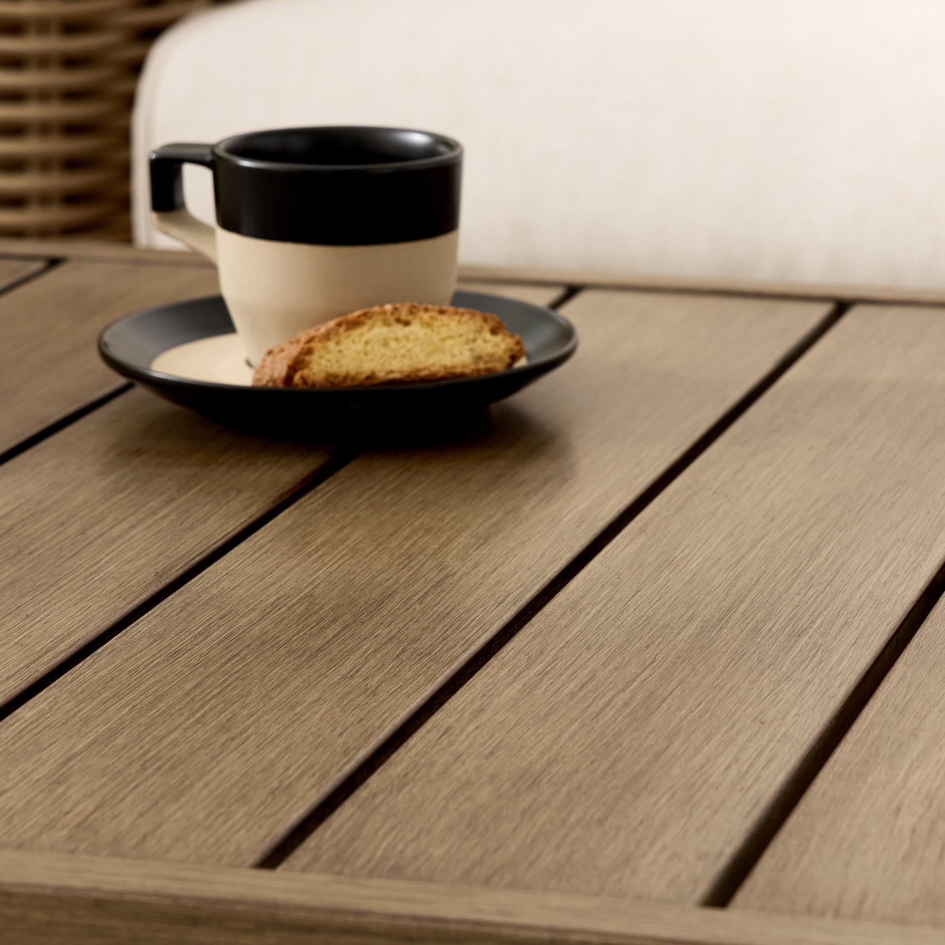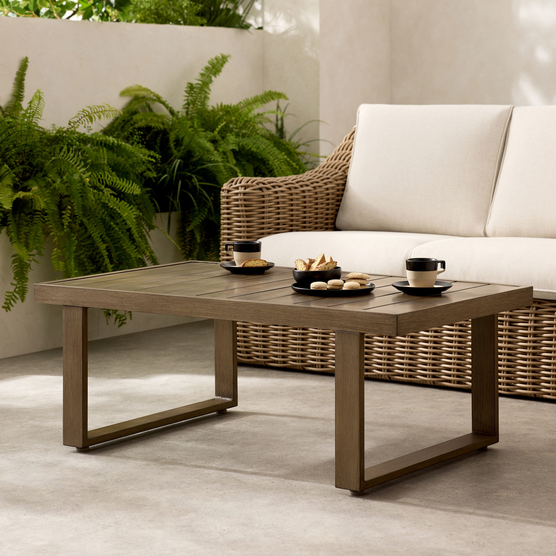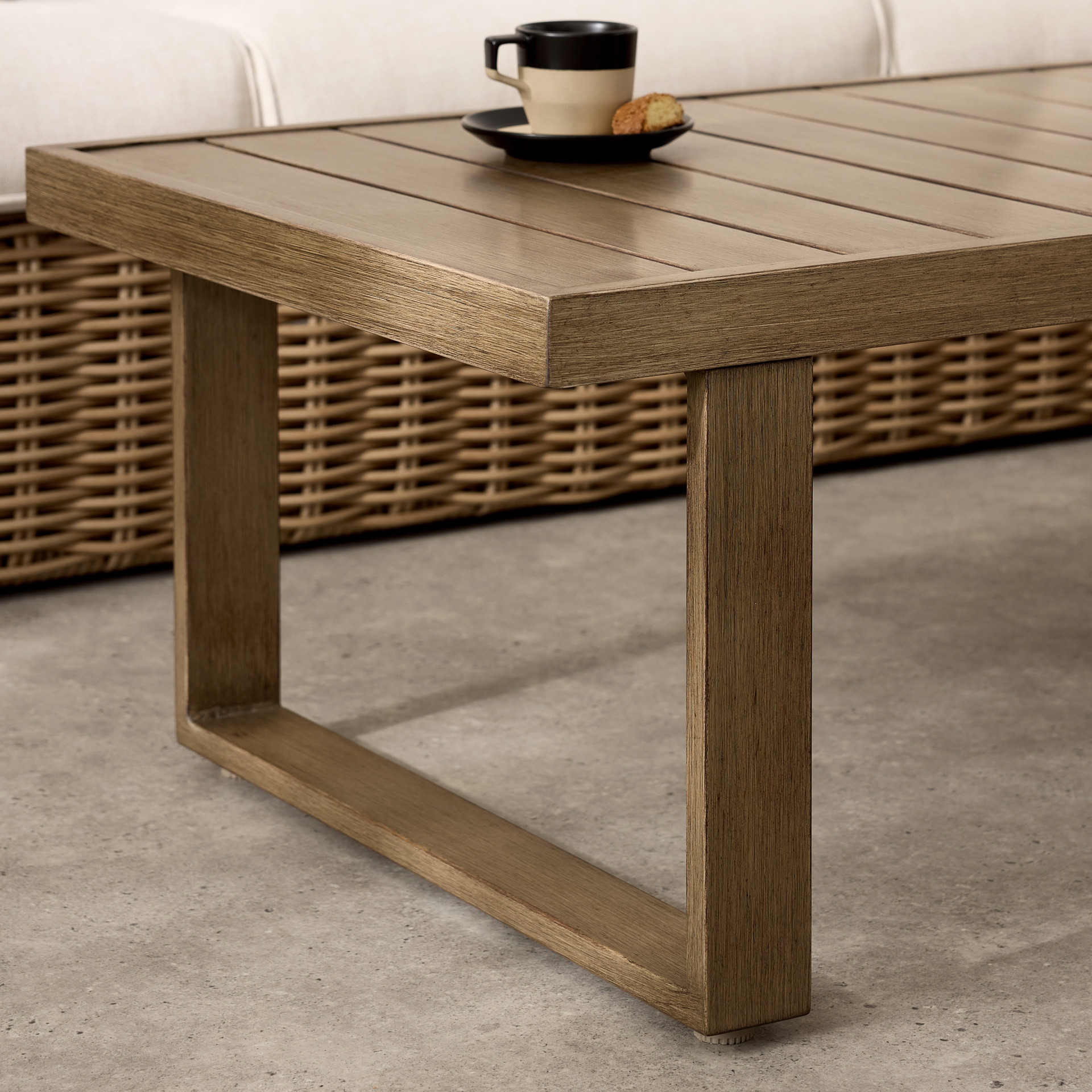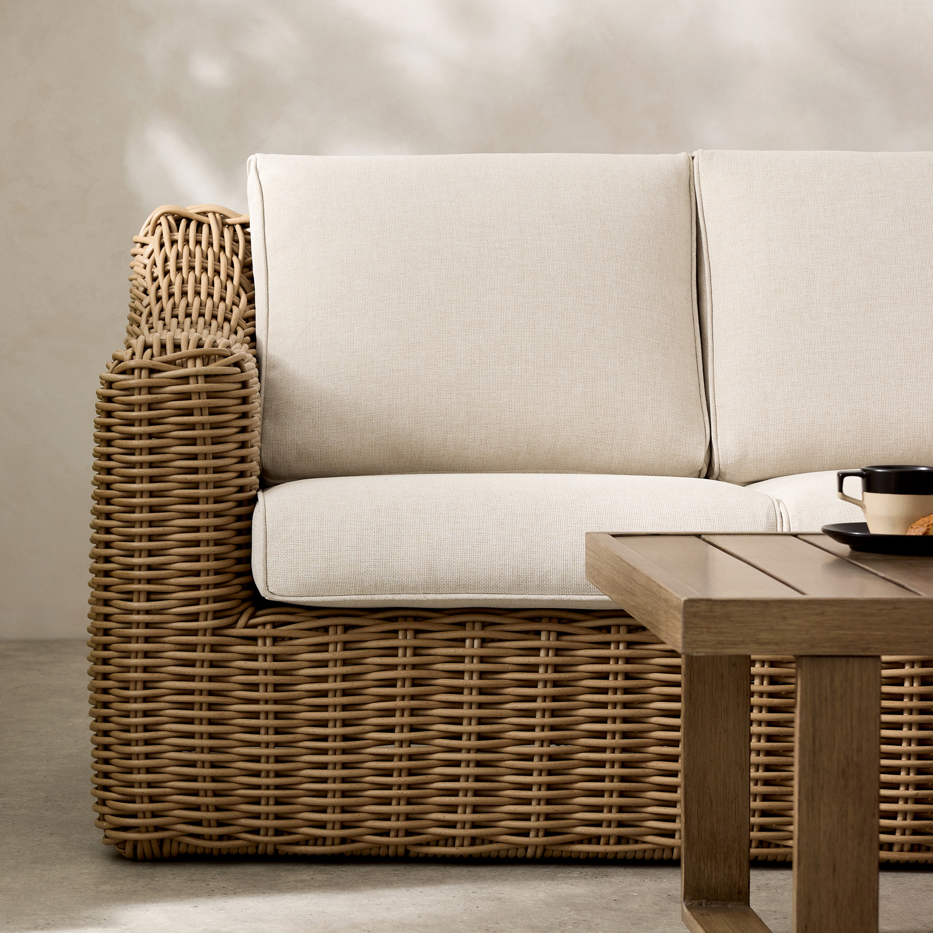 The Gila is a stunning and durable outdoor lounge set. Crafted from round wicker and sturdy aluminum, it offers a beautiful natural look while remaining very easy to maintain. Enjoy warm summer evenings with friends or family, savoring a snack or a drink in the comfort provided by the wide armrests and the sofa.