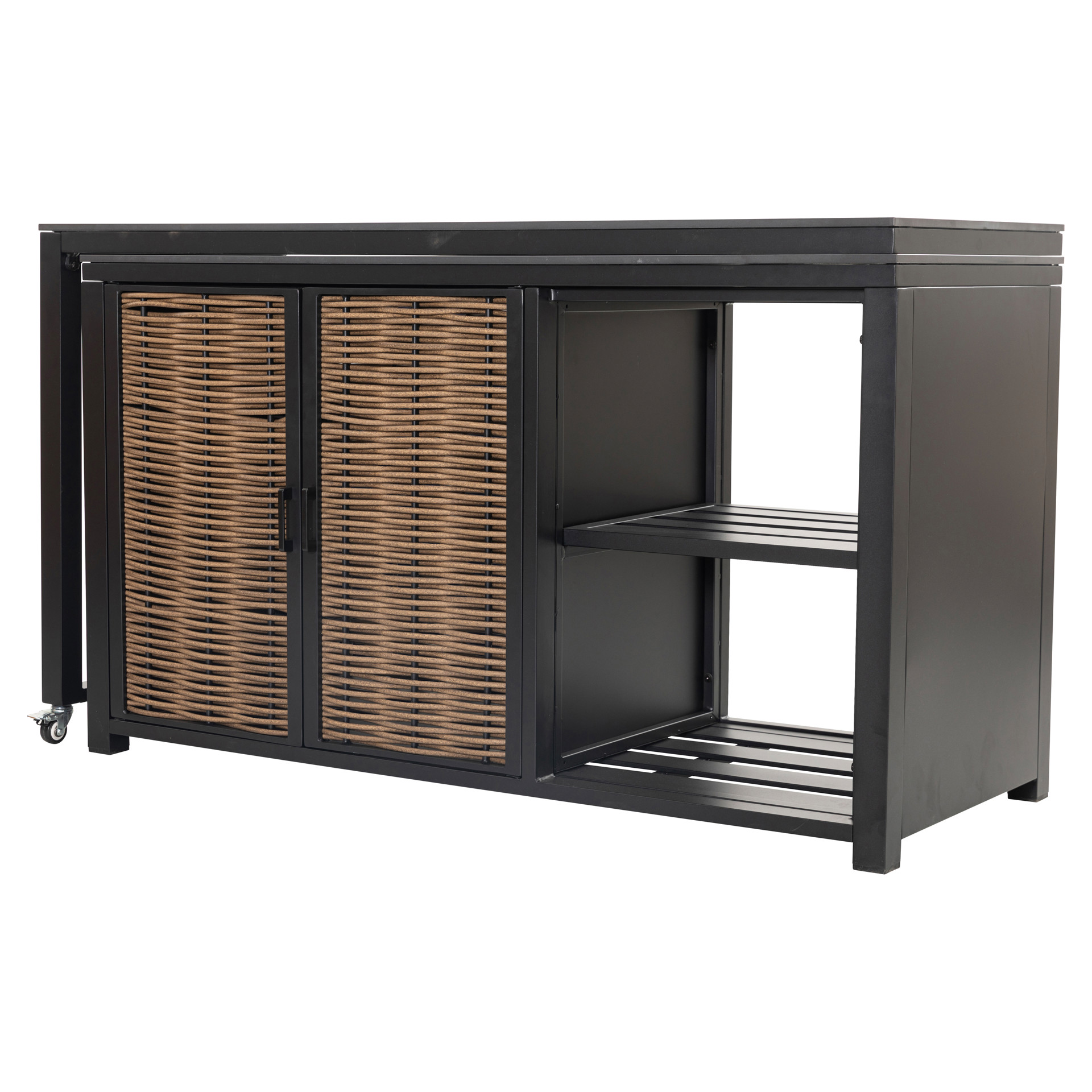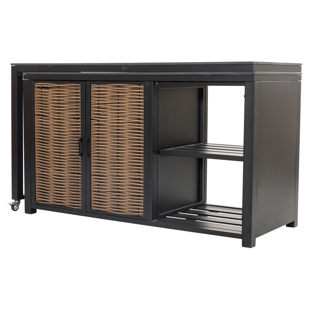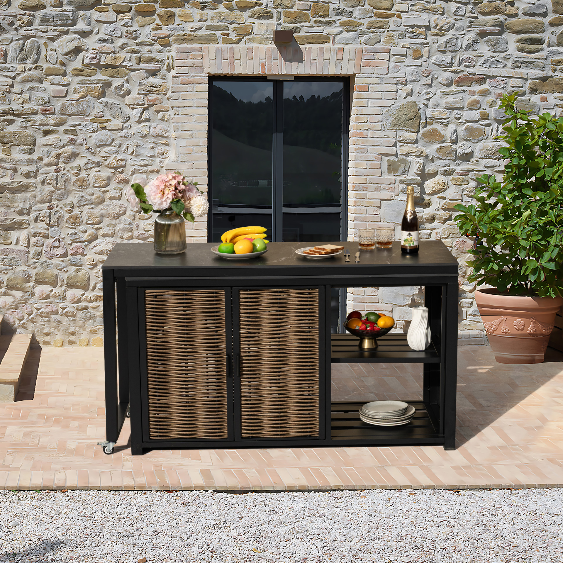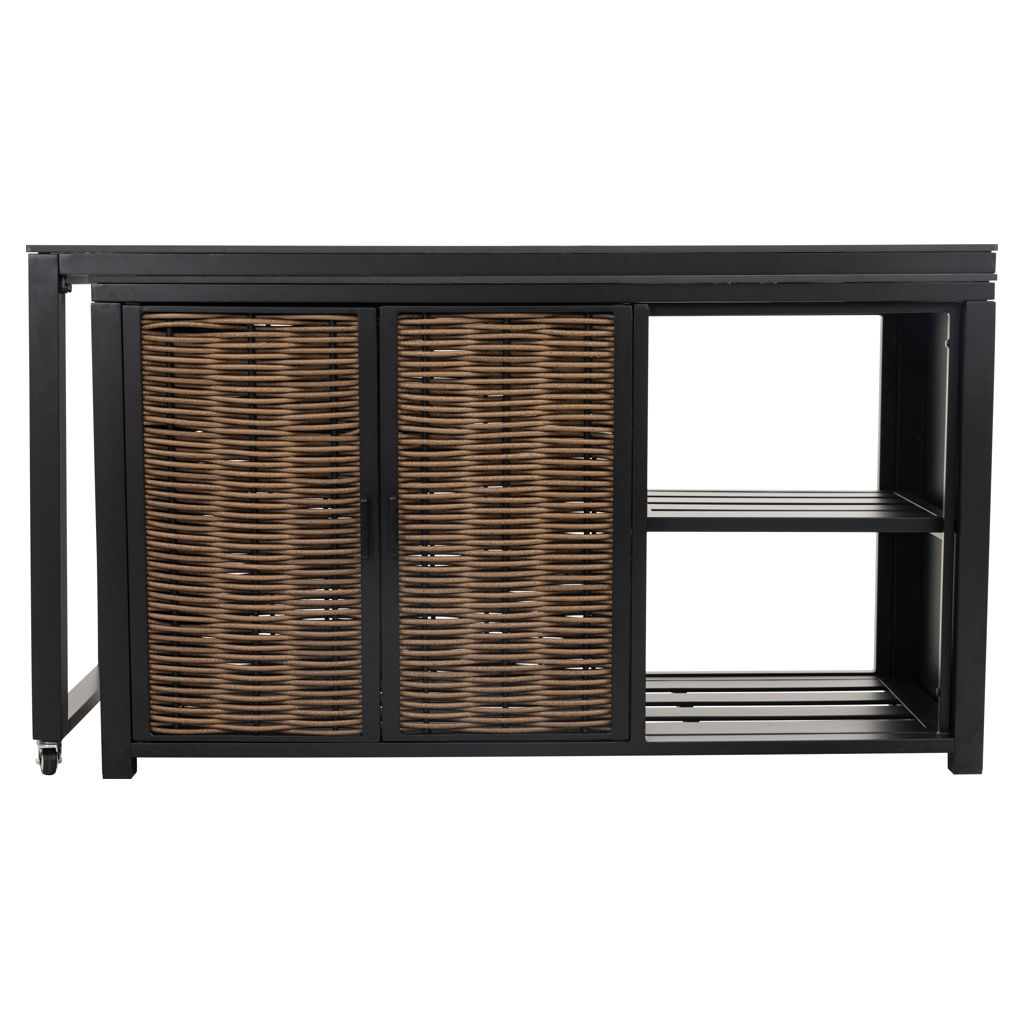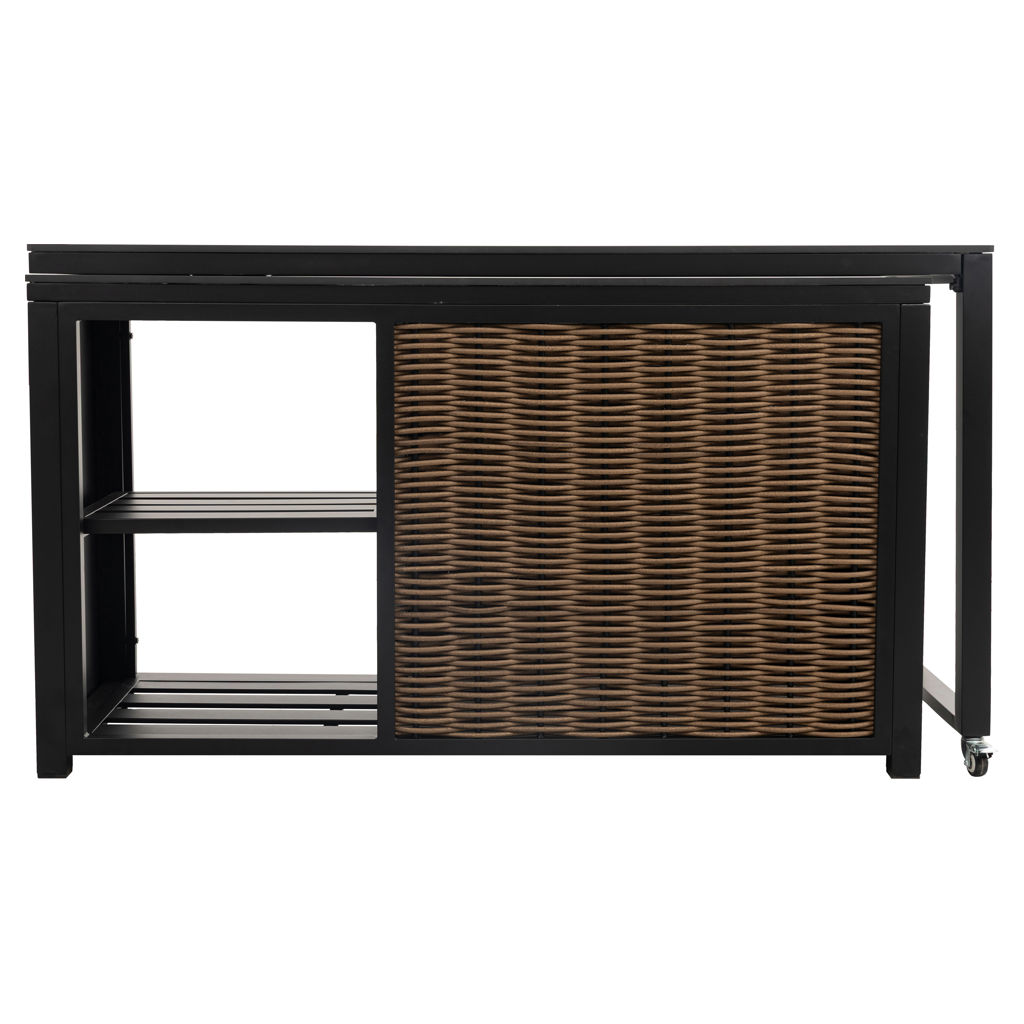 Adds a touch of elegance with its woven-style design, blending functionality and style. It provides easy access and a spacious work surface for cooking and food preparation.