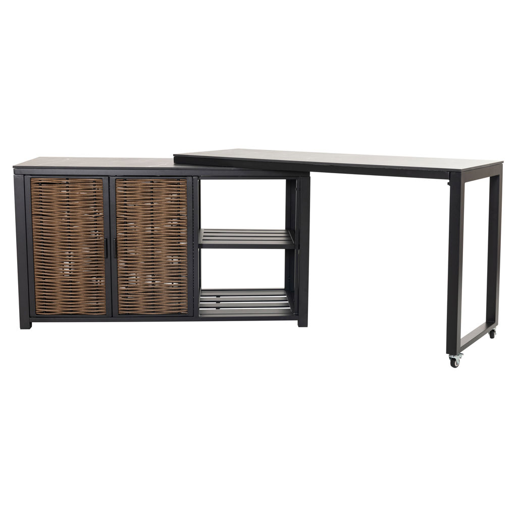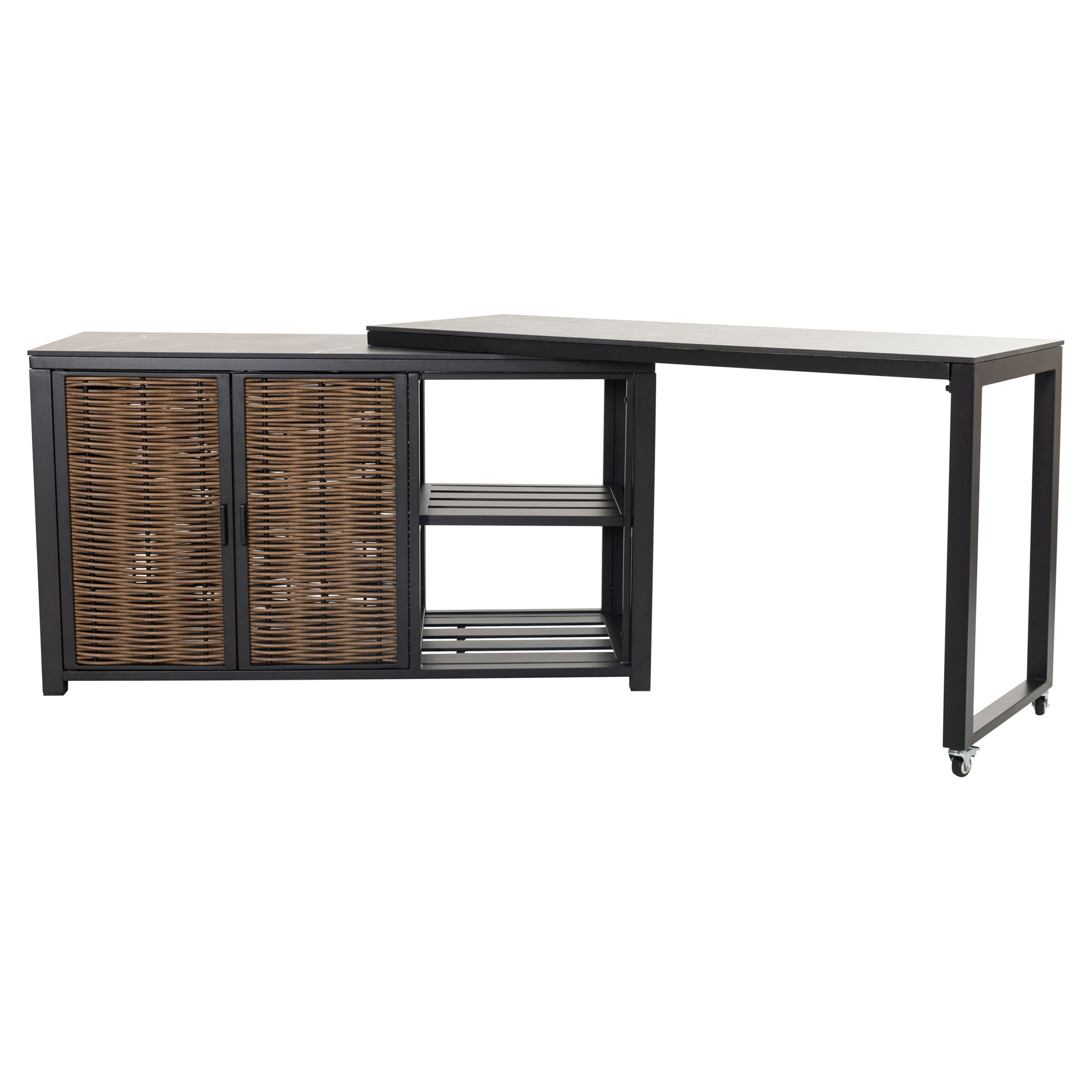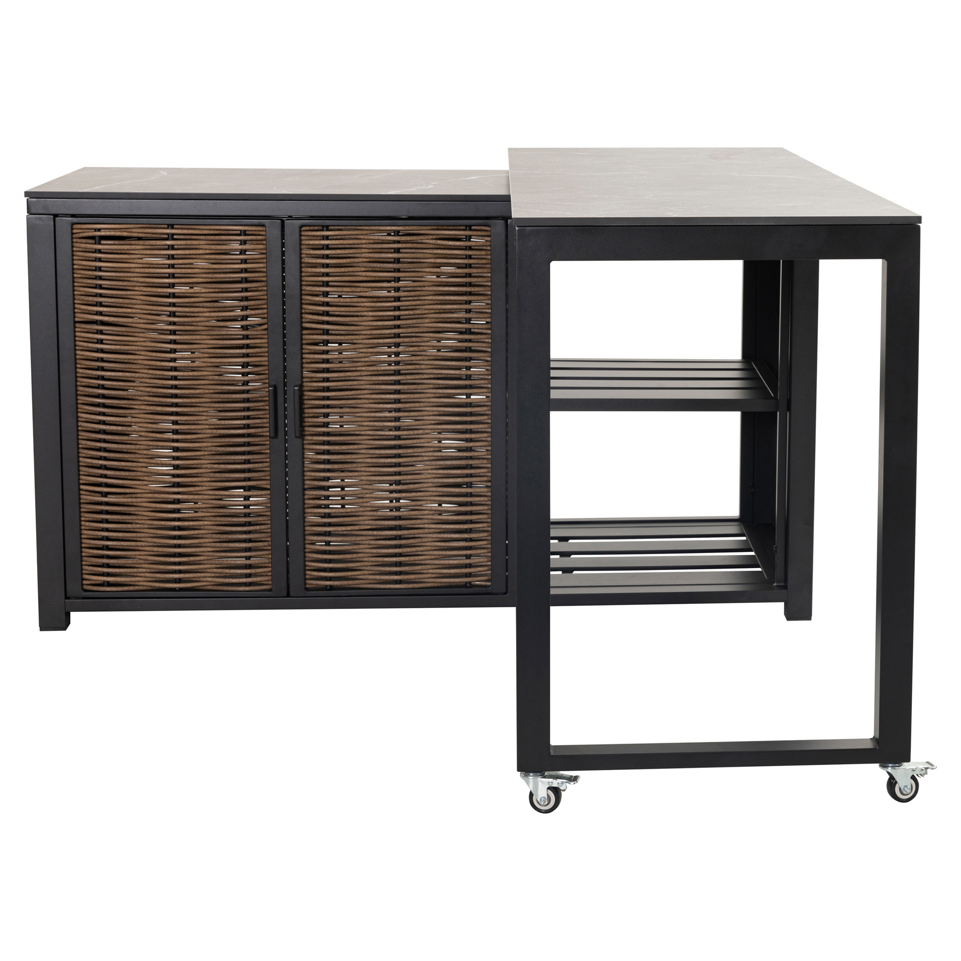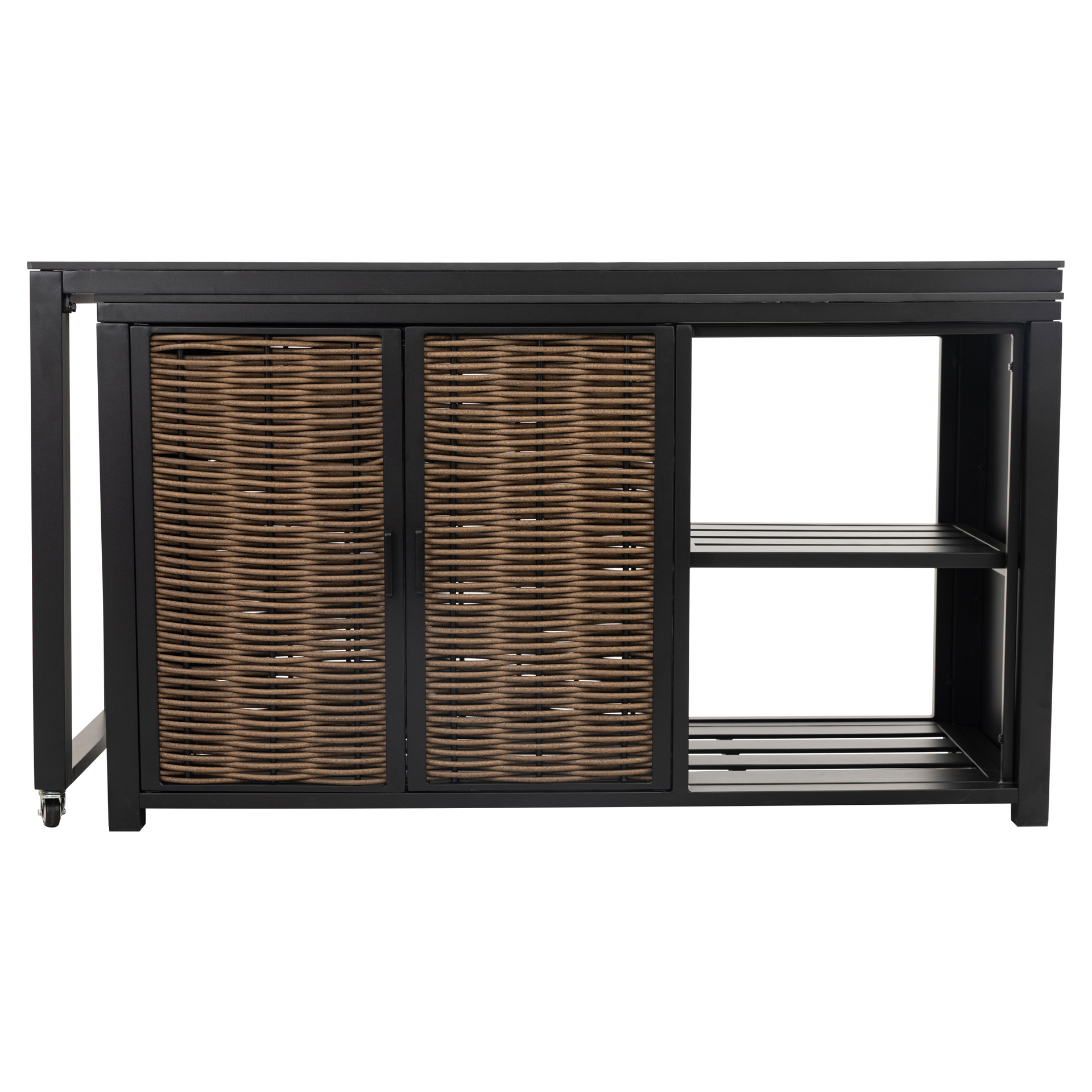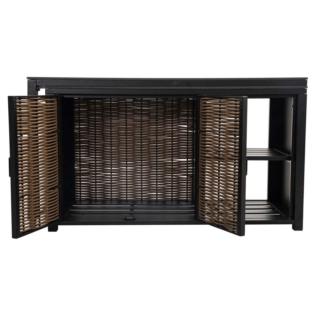 Adds a touch of elegance with its woven-style design, blending functionality and style. It provides easy access and a spacious work surface for cooking and food preparation.