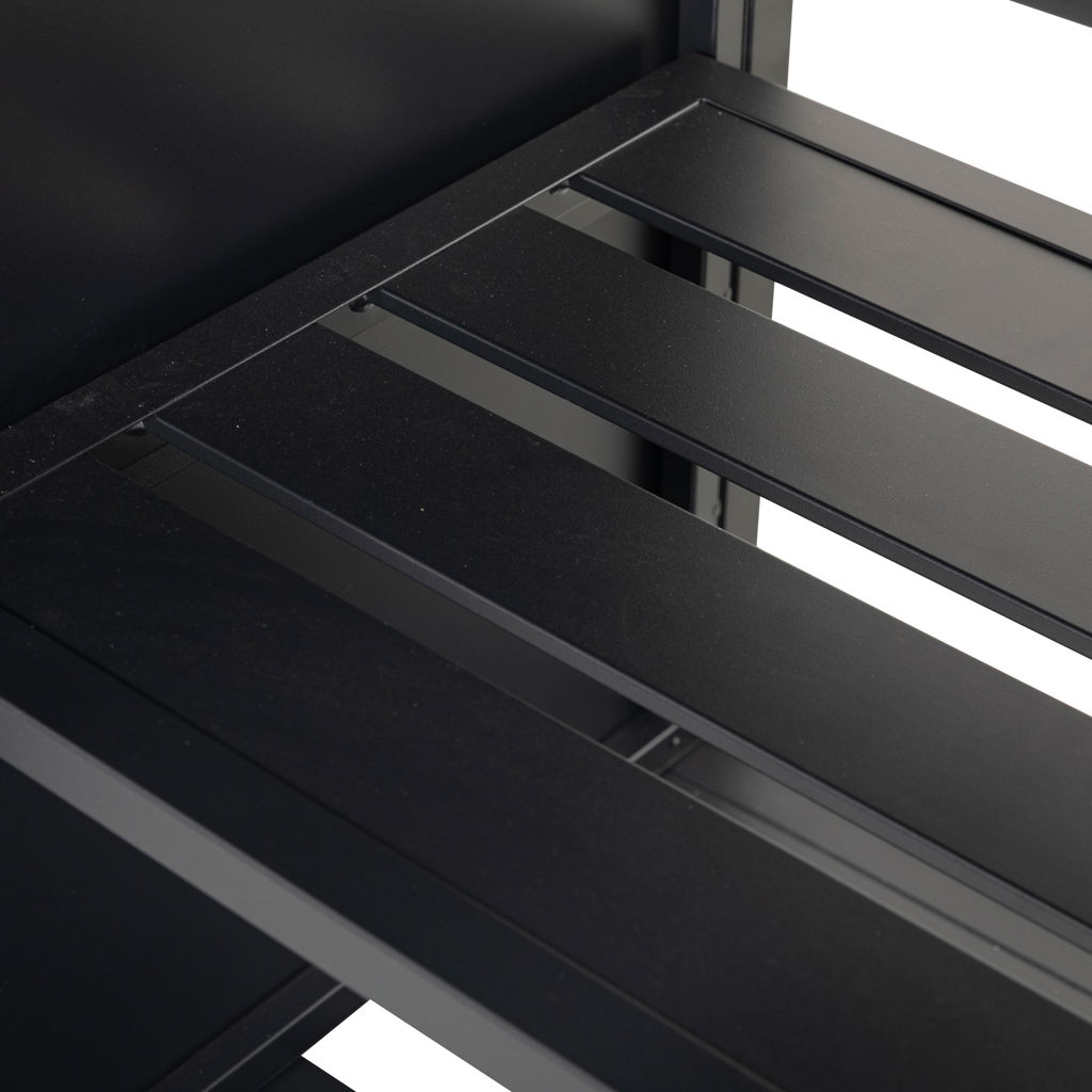 This outdoor kitchen perfectly combines functionality and elegance. It features a sleek black aluminum frame that delivers a modern, refined aesthetic. The kitchen includes: