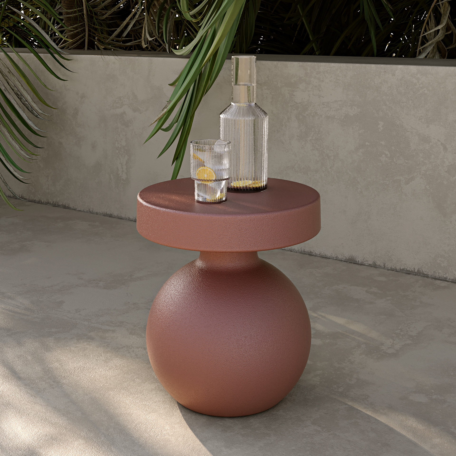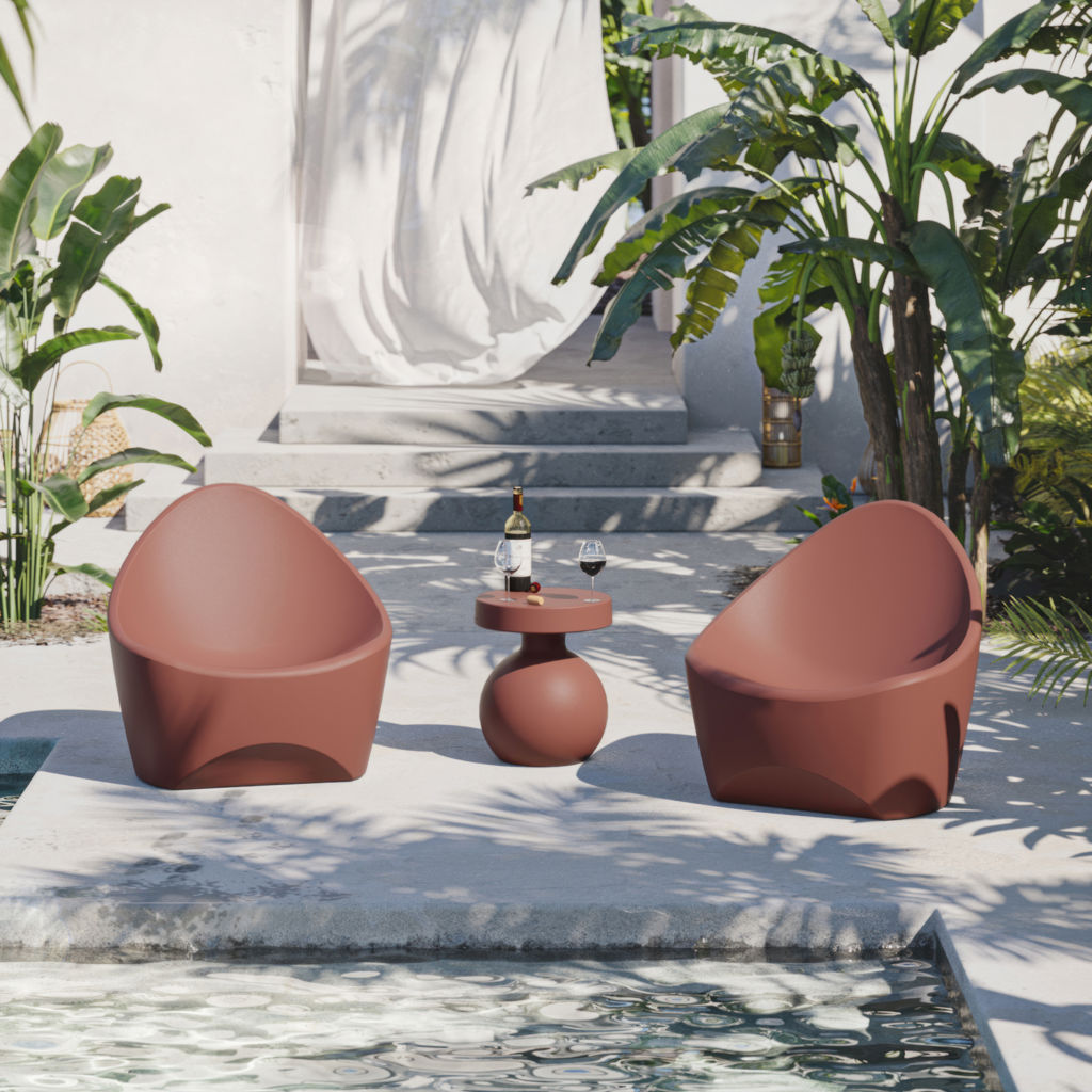 Scandinavian furniture is all about meeting a need. This side table with its rounded base provides a large surface for cocktails, books, and sunglasses while you enjoy your outdoor space. Both functional and aesthetic, it creates an enchanting setting to relax in nature.