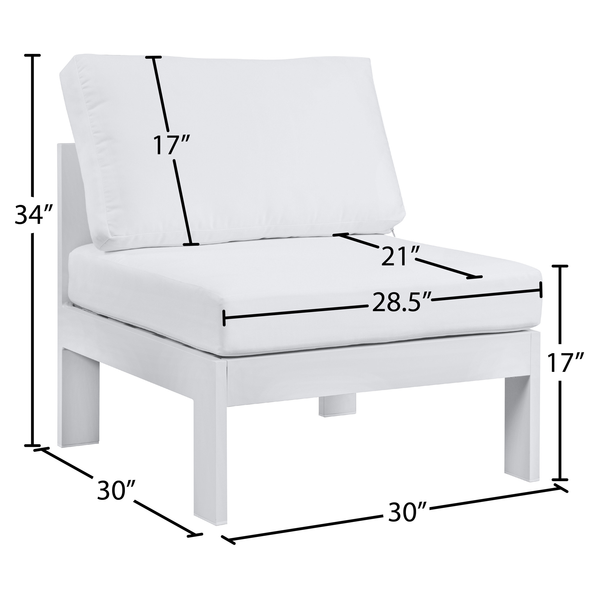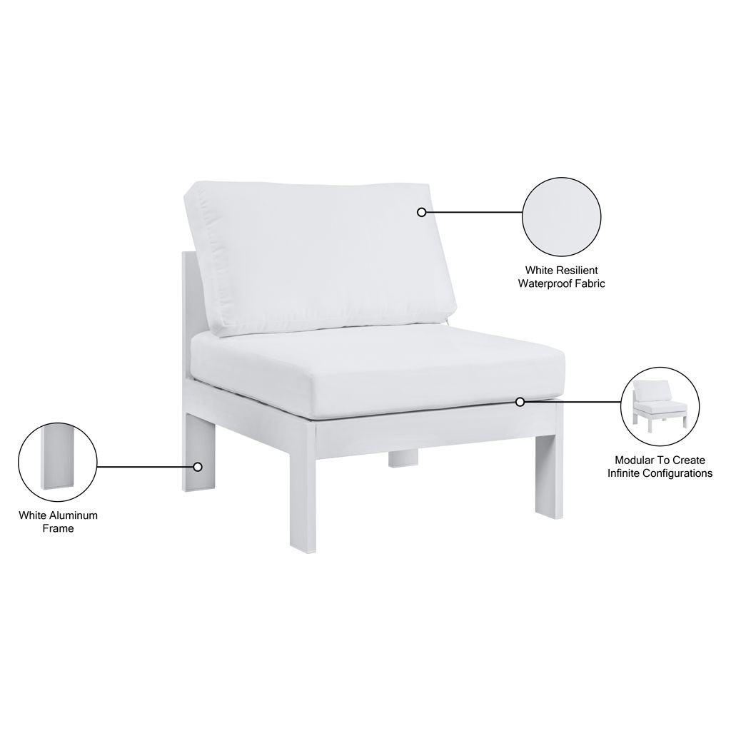Outdoor Patio Aluminum Armless Chair Meridian Furniture 375WHITE-ARMLESS