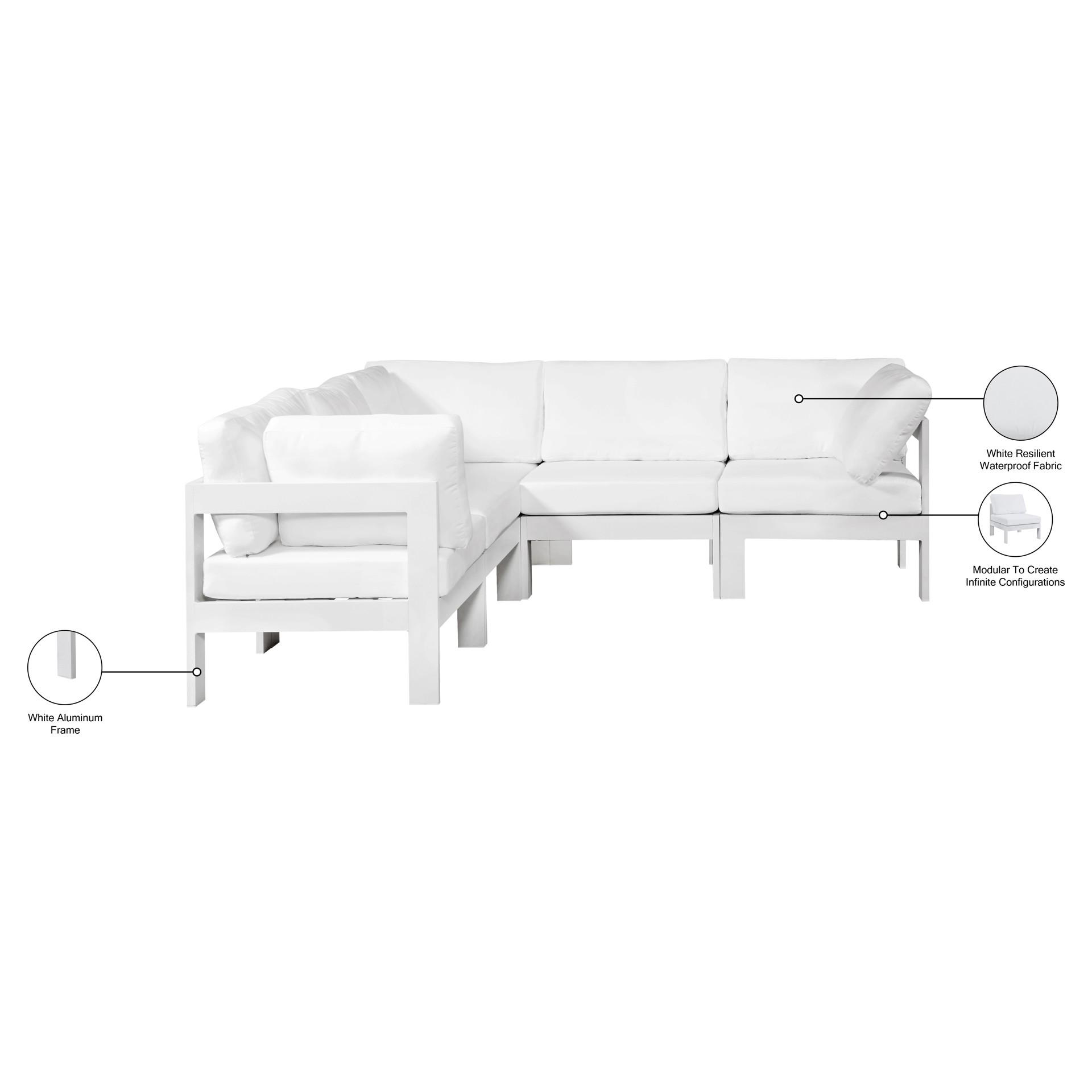 Nizuc Collection Outdoor Patio Modular Sectional Meridian Furniture 375WHITE-SEC5B