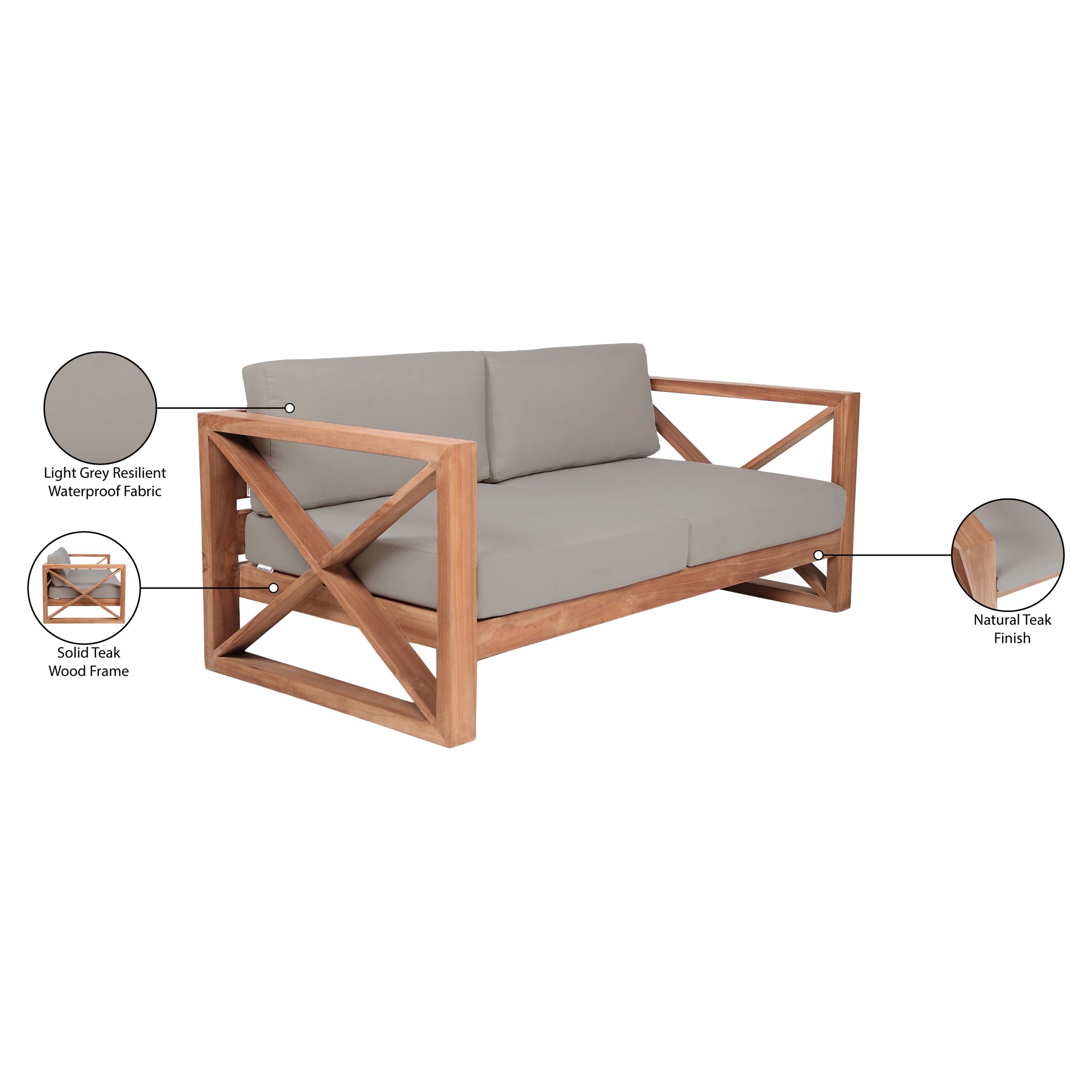 Made from teak with a natural finish and black water resistant fabric, this loveseat is resistant to rot and pests, so it weathers the outdoors with ease.