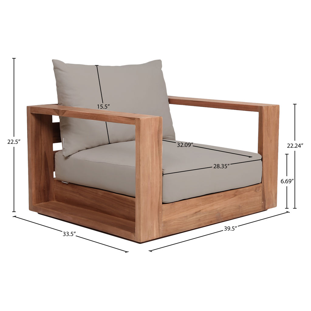 Make this Tulum teak outdoor patio chair the go to spot for relaxing and entertaining guest in your outdoor space. This chair features resilient water resistant grey fabric making it the perfect spot to rest your feet and enjoy the company of friends or family while you take in the sunrise.