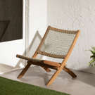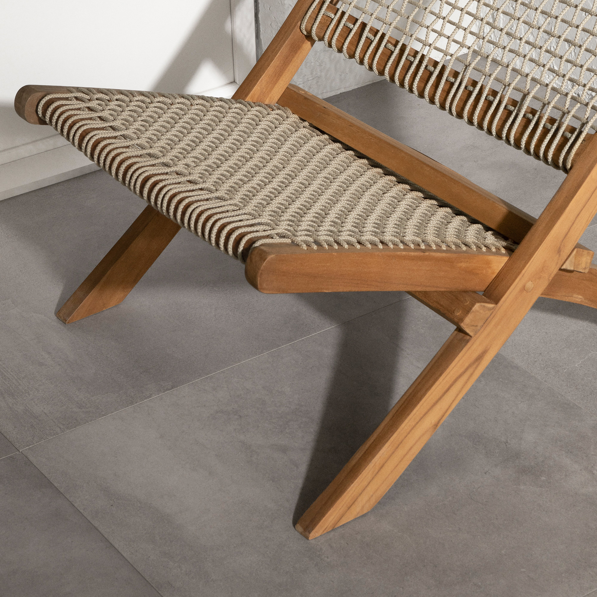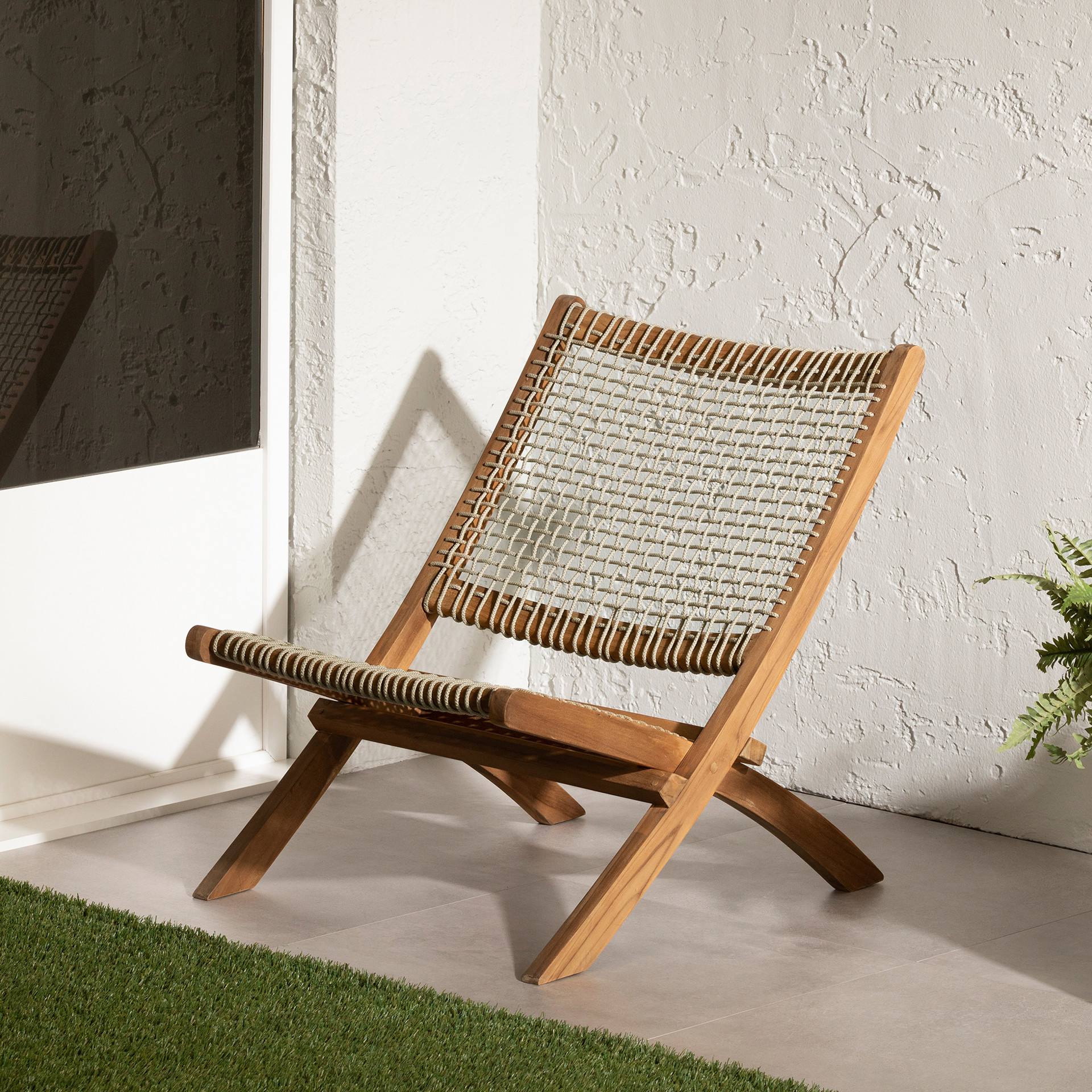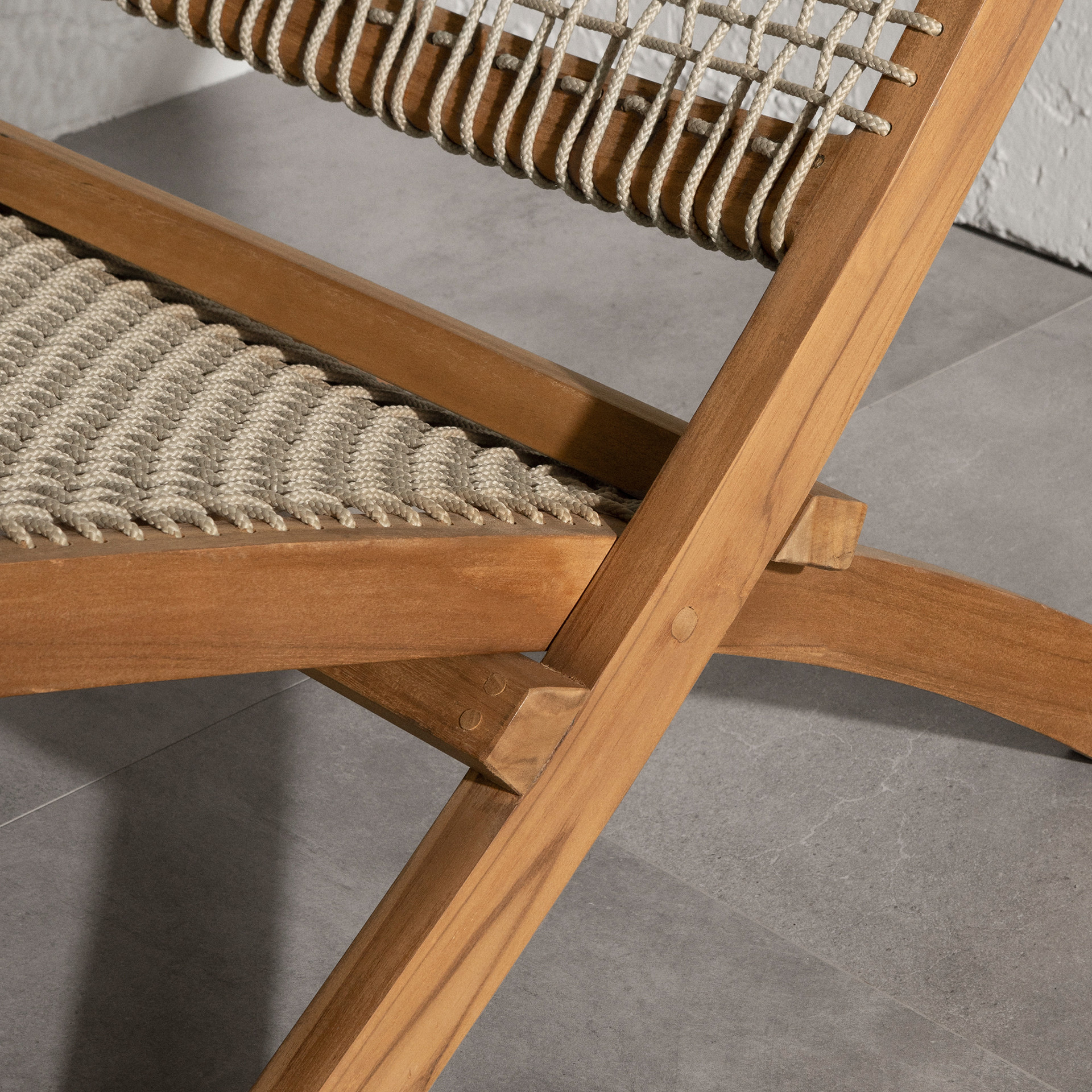 Behind the popular bohemian harmony trend is a desire to blend natural materials together to create a warm, inviting, and eclectic atmosphere. This wood and woven rope outdoor chair is made of teak and polyester, two durable materials that will extend its lifespan. This type of wood is known to be resistant to rain. Your new lounge chair requires very little maintenance, allowing you to enjoy quiet moments outside around the pool or reading a good book.