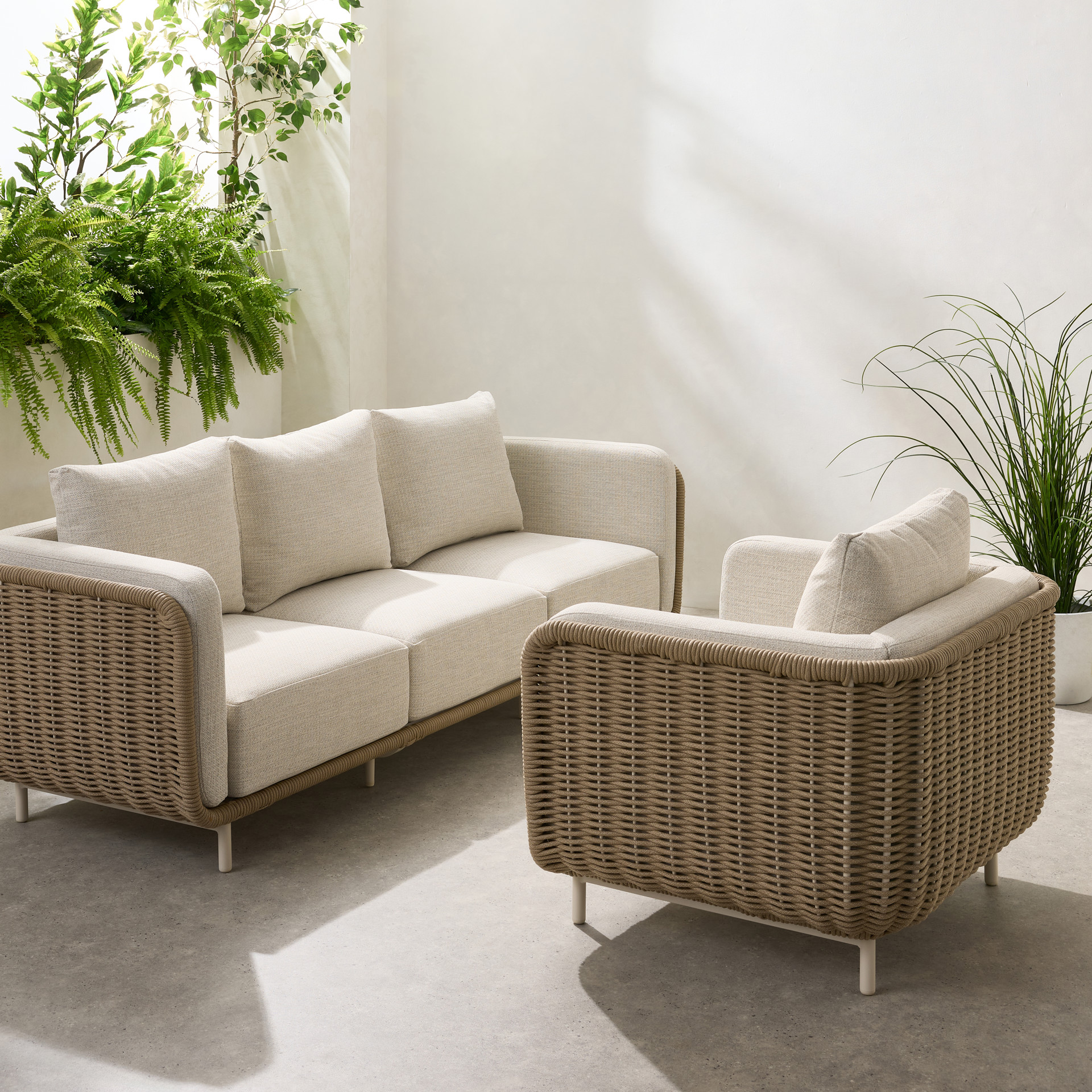 This collection is inspired by the tranquil essence of coastal living. The Horizon 3-seater outdoor sofa, designed as a gentle island of relaxation, embodies the flowing lines of ocean wavees.