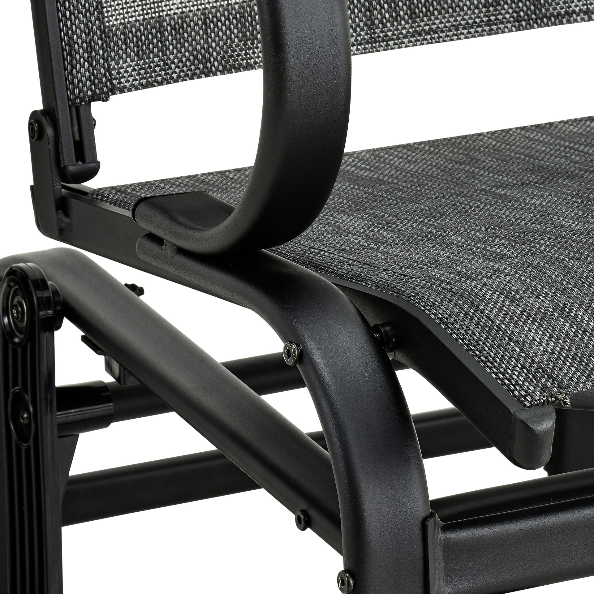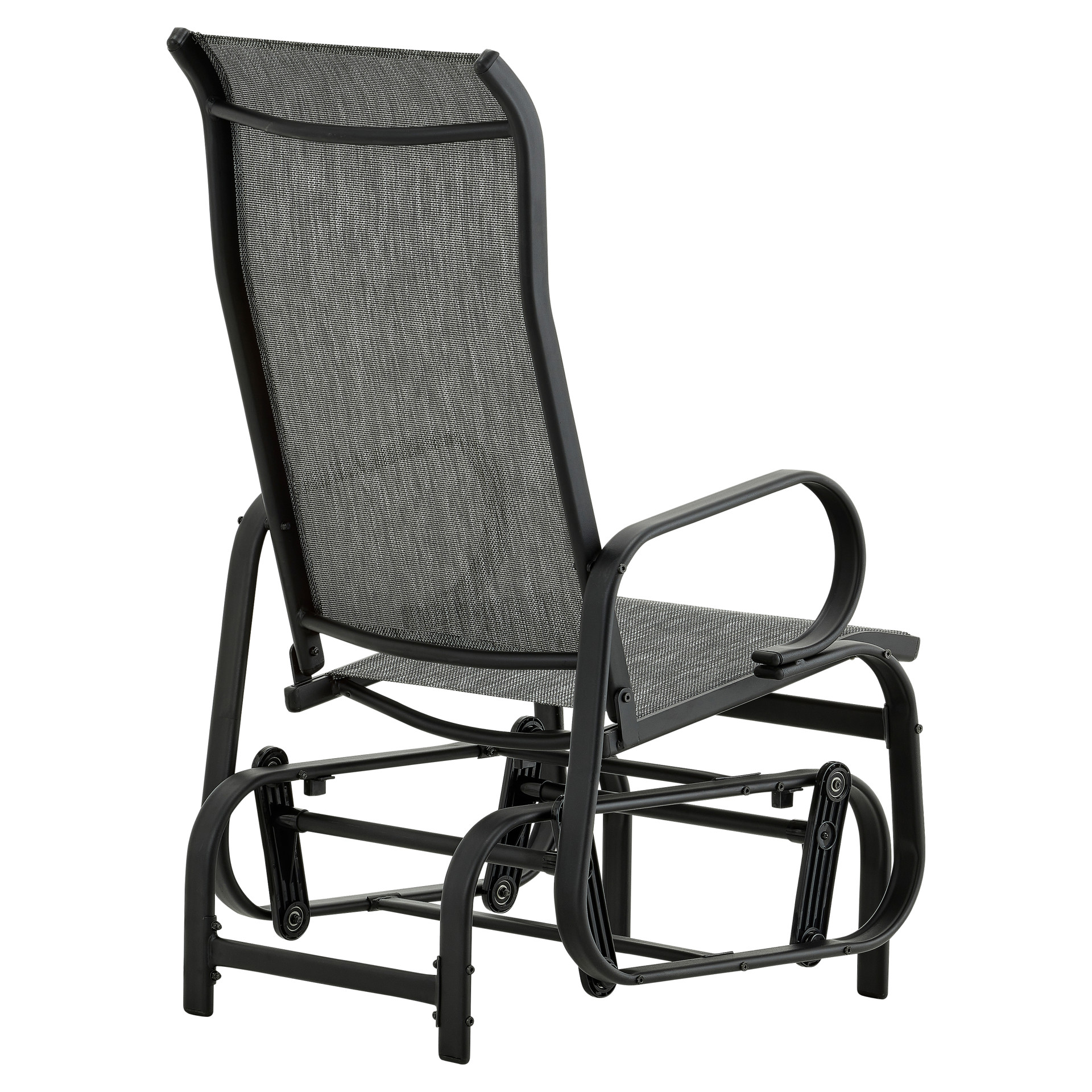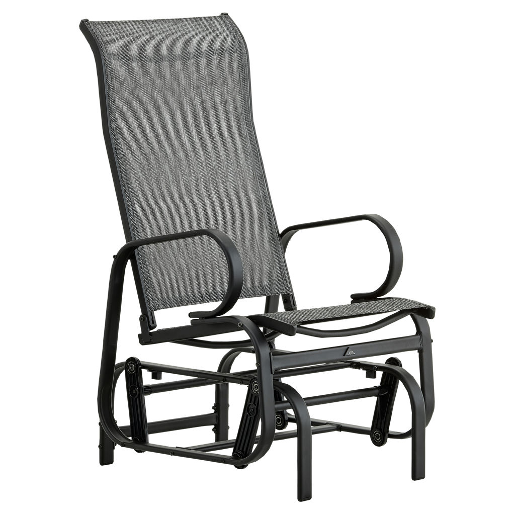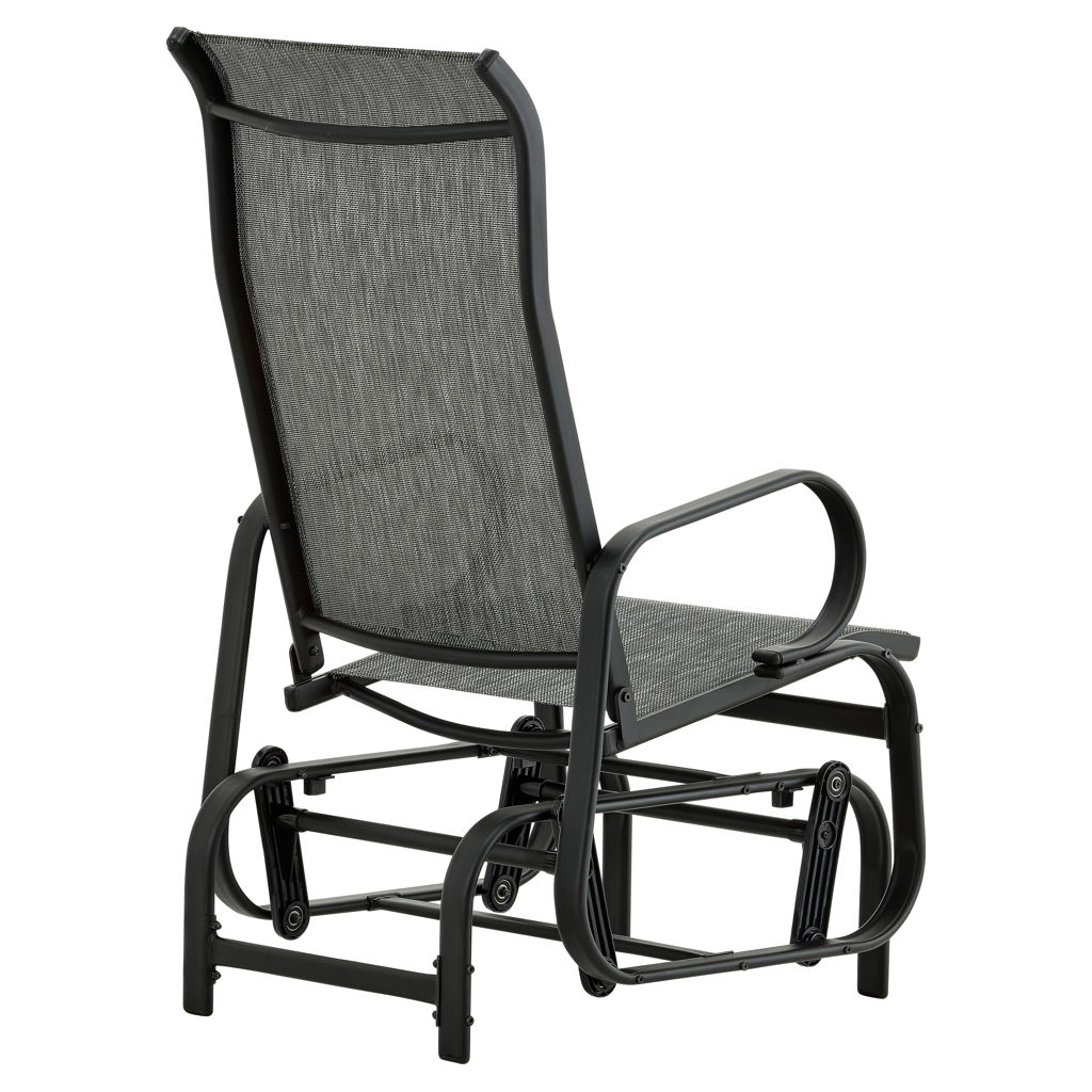 This swivel glider chair features a modern take on the traditional rocker and offers a much smoother, soothing motion. With a high backrest to rest your head and a combination of comfort and strength, this chair provides hours of effortless rocking pleasure. Made of steel and textilene, this glider chair requires very little maintenance.