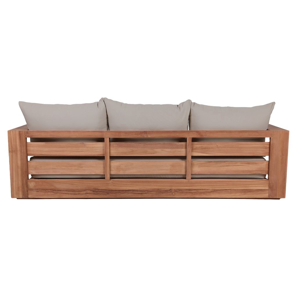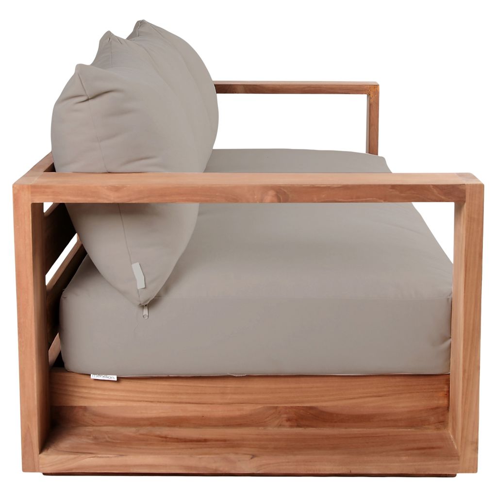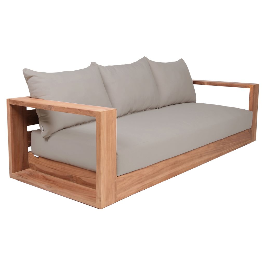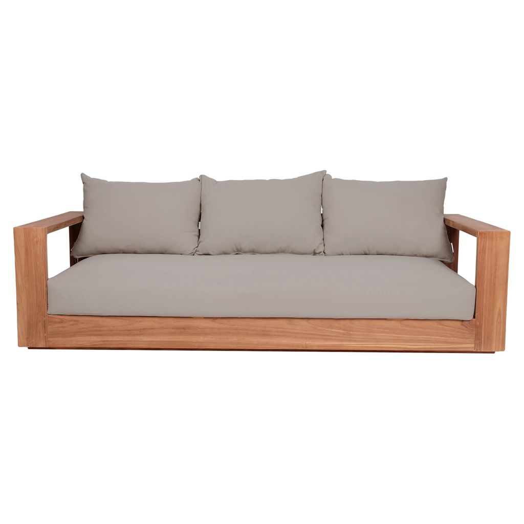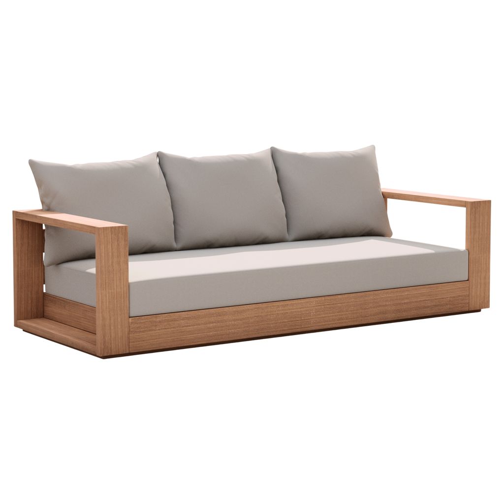 Make this Tulum teak outdoor patio sofa the go to spot for relaxing and entertaining guest in your outdoor space. This sofa features resilent water resistant grey fabric making it the perfect spot to rest your feet and enjoy the company of friends or family while you take in the sunrise.