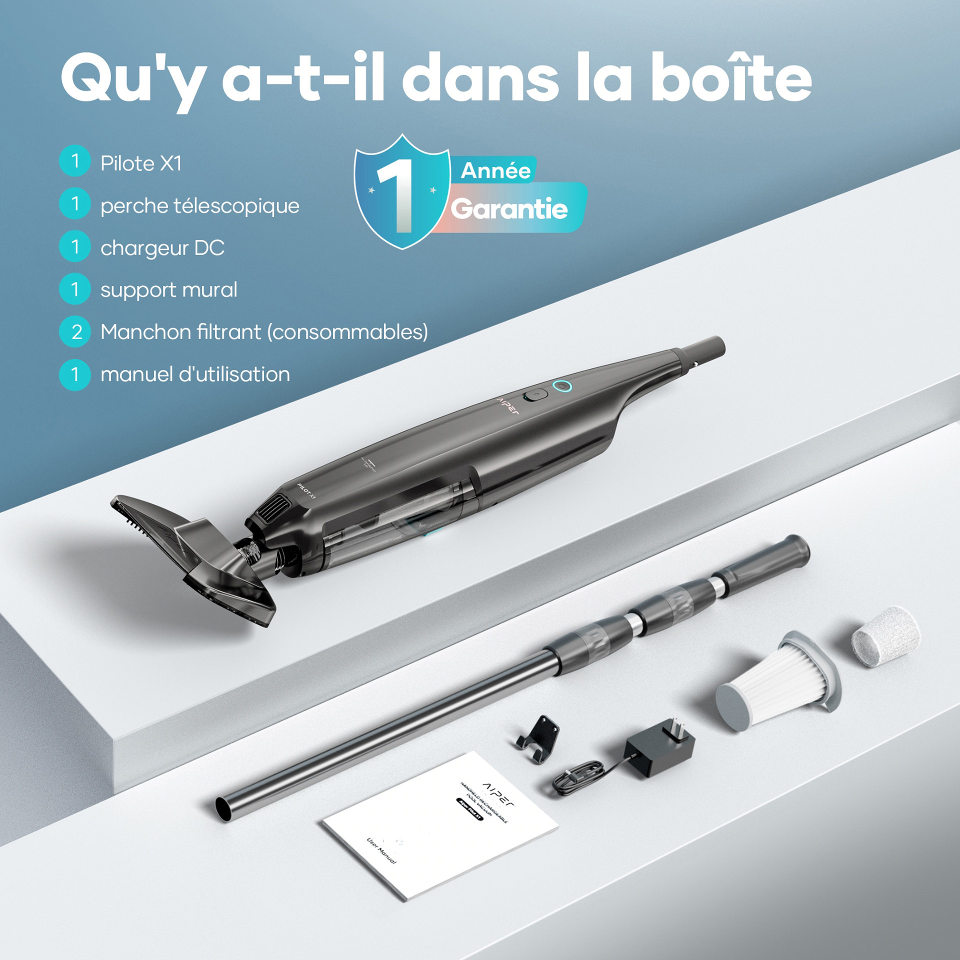 Armed with a High Efficiency Filtration System and 1260 GPH suction, the Pilot X1 captures all debris for a spotless pool.