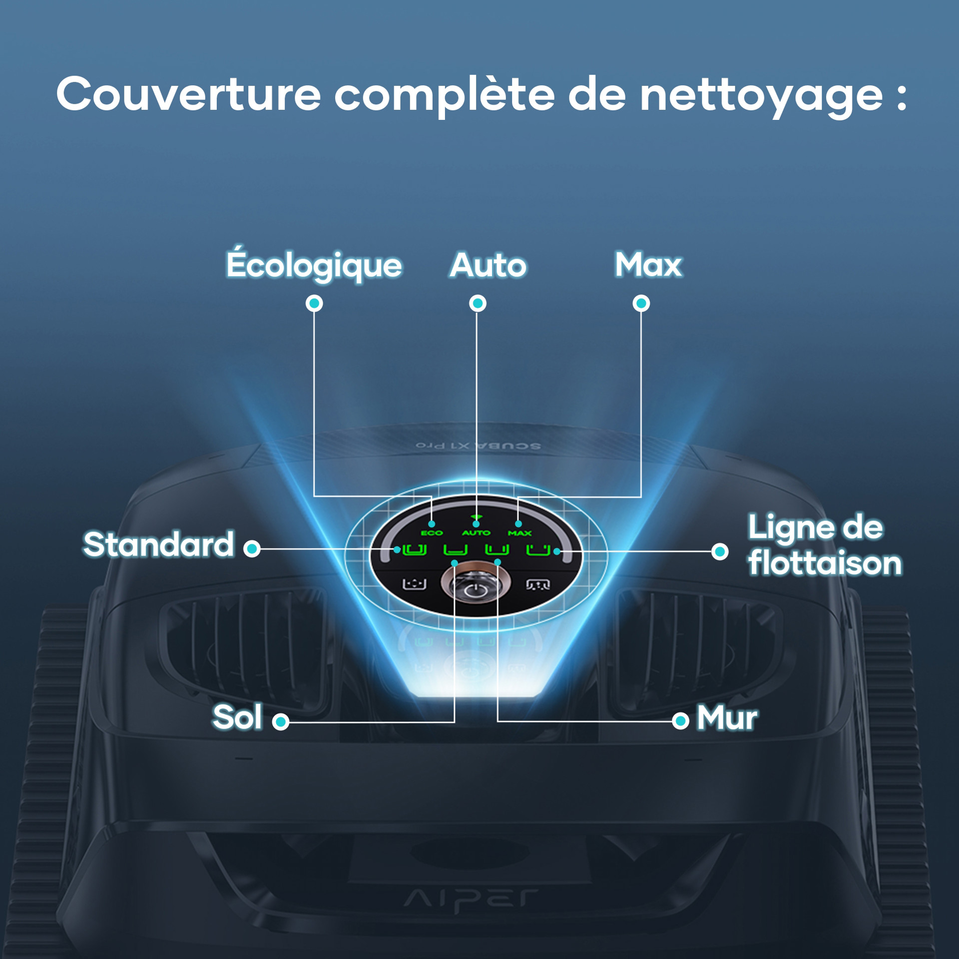 With Aiper's unique FlexiPath™ technology, the Scuba X1 Pro senses different depth platforms while cleaning pool walls and intelligently adjusts its path. This ensures perfect cleaning of pool ladders and multi-level areas like California beaches.