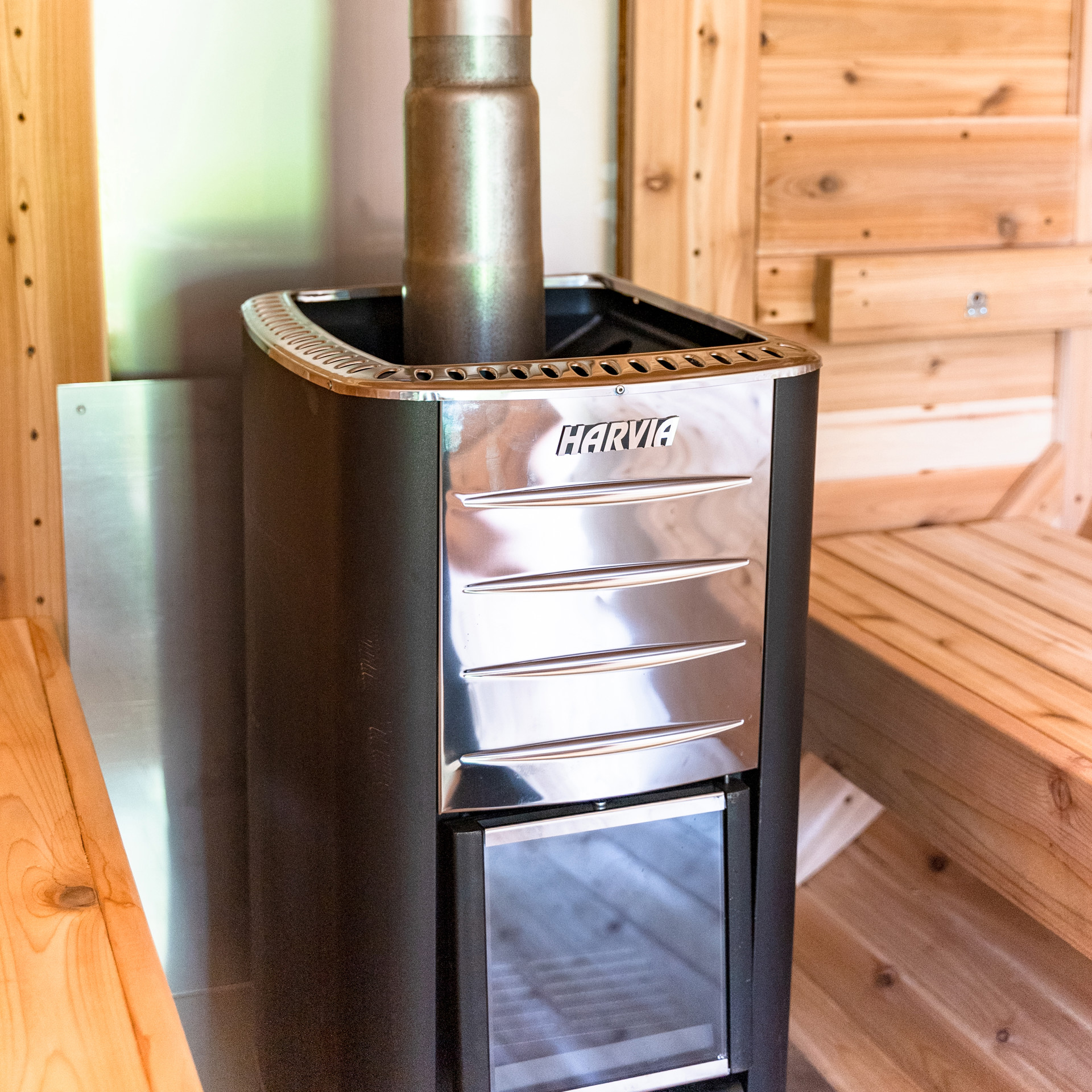 The red cedar barrel sauna with 1.5” thick planks is a true handcrafted marvel. This sauna is the result of traditional craftsmanship, combined with a sleek, modern aesthetic. The red cedar used to create this sauna is a highly weather-resistant wood, making it perfectly suited for outdoor use.