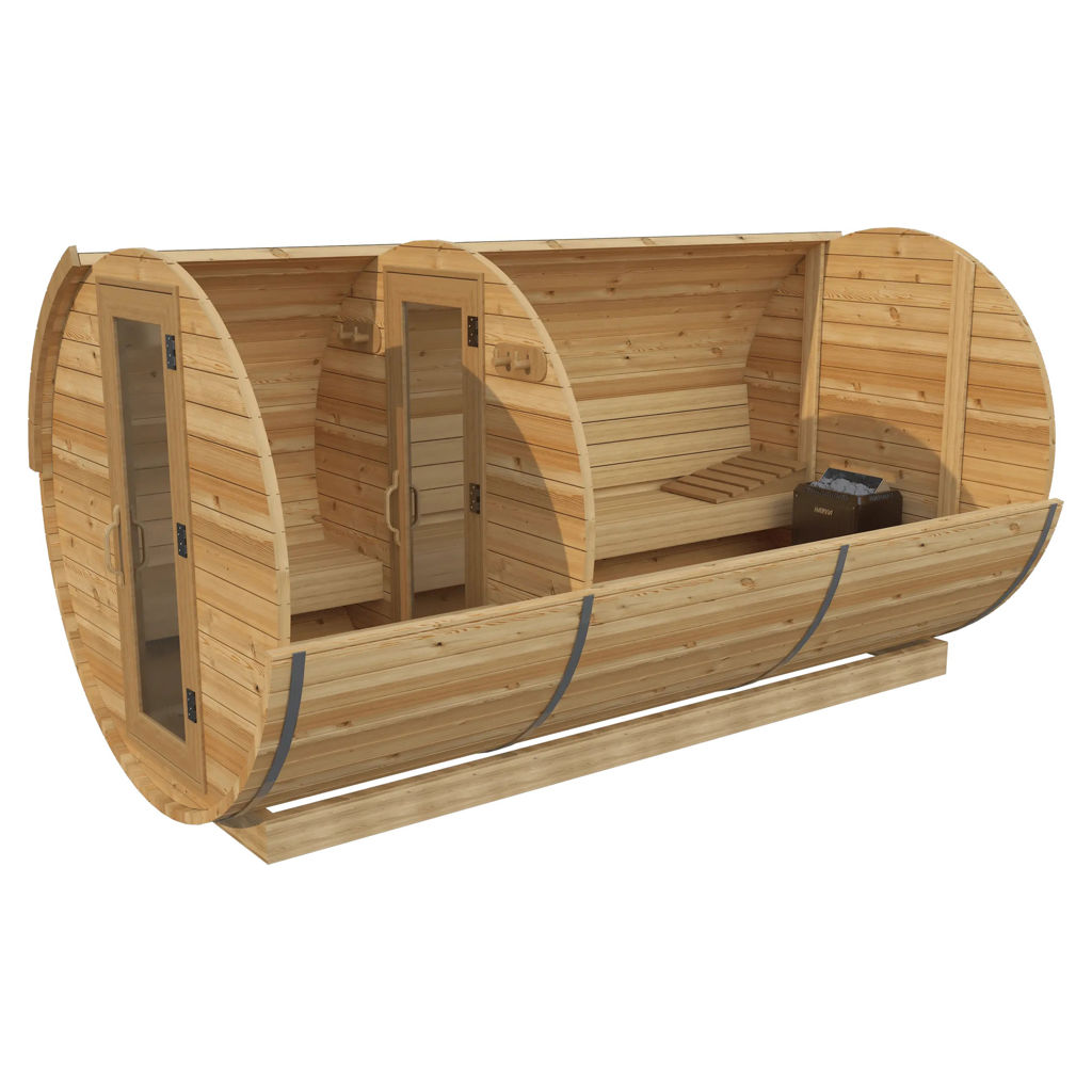 Saunaspa barrel saunas are handcrafted in Quebec from top-quality cedar wood.