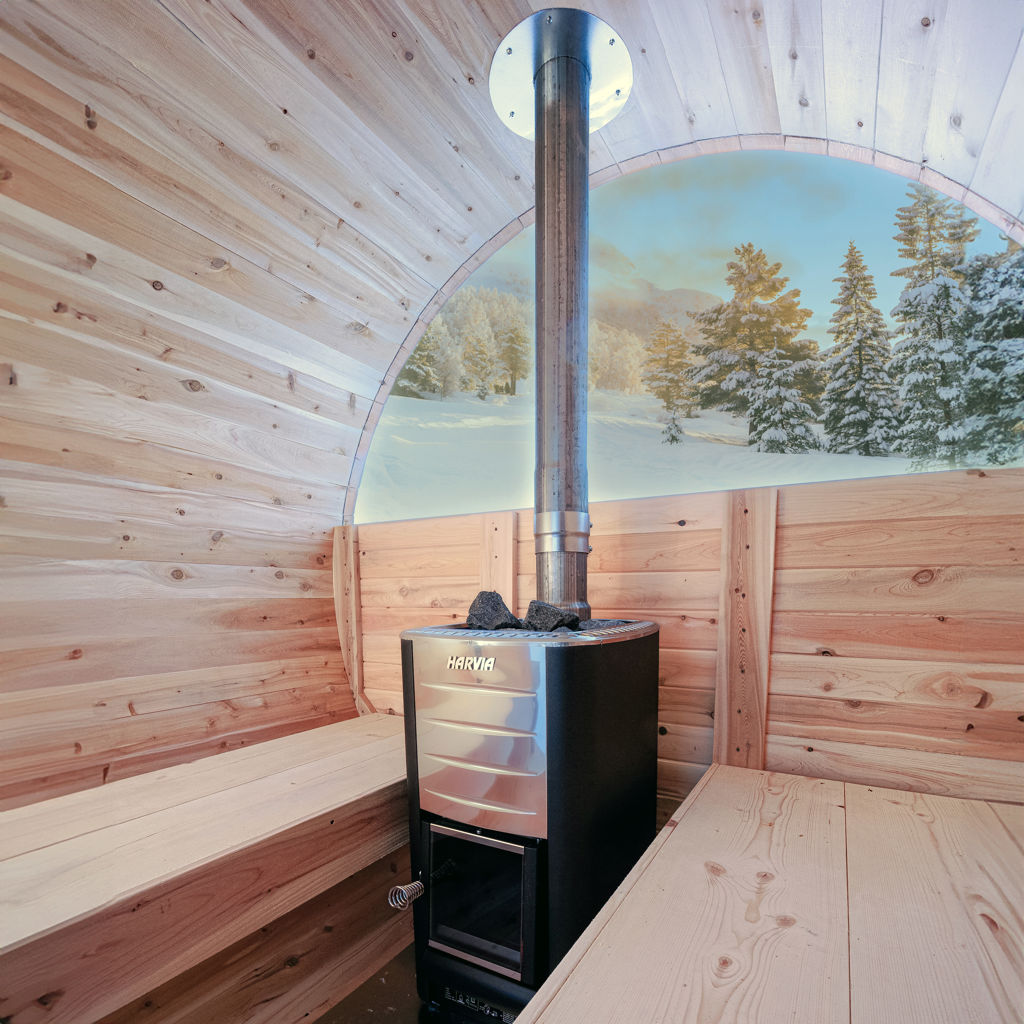 The red cedar barrel sauna with 1.5” thick planks is a true handcrafted marvel. This sauna is the result of traditional craftsmanship, combined with a sleek, modern aesthetic. The red cedar used to create this sauna is a highly weather-resistant wood, making it perfectly suited for outdoor use.