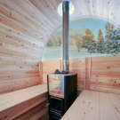 Thick Cedar Barrel Sauna with Wood-burning Stove, Half-moon Window and Change Room 6.5' X 12'