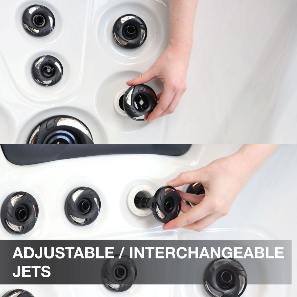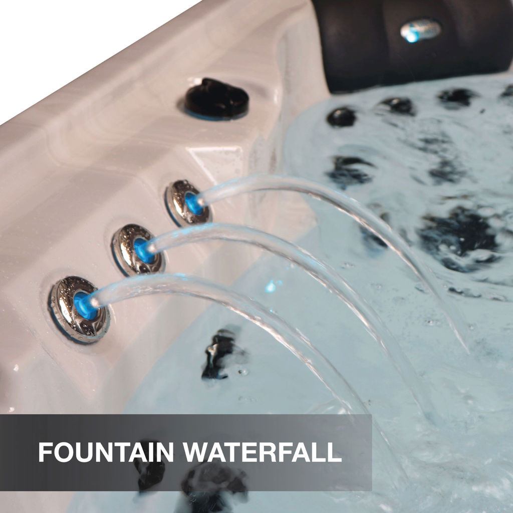 It features a full-length lounger, 2 deep captains chairs, and bench seating. Whether you are looking for a full-body massage, to target hard to reach areas, or simply relax after a long day, the 55 adjustable and interchangeable hydrotherapy jets will do the trick!