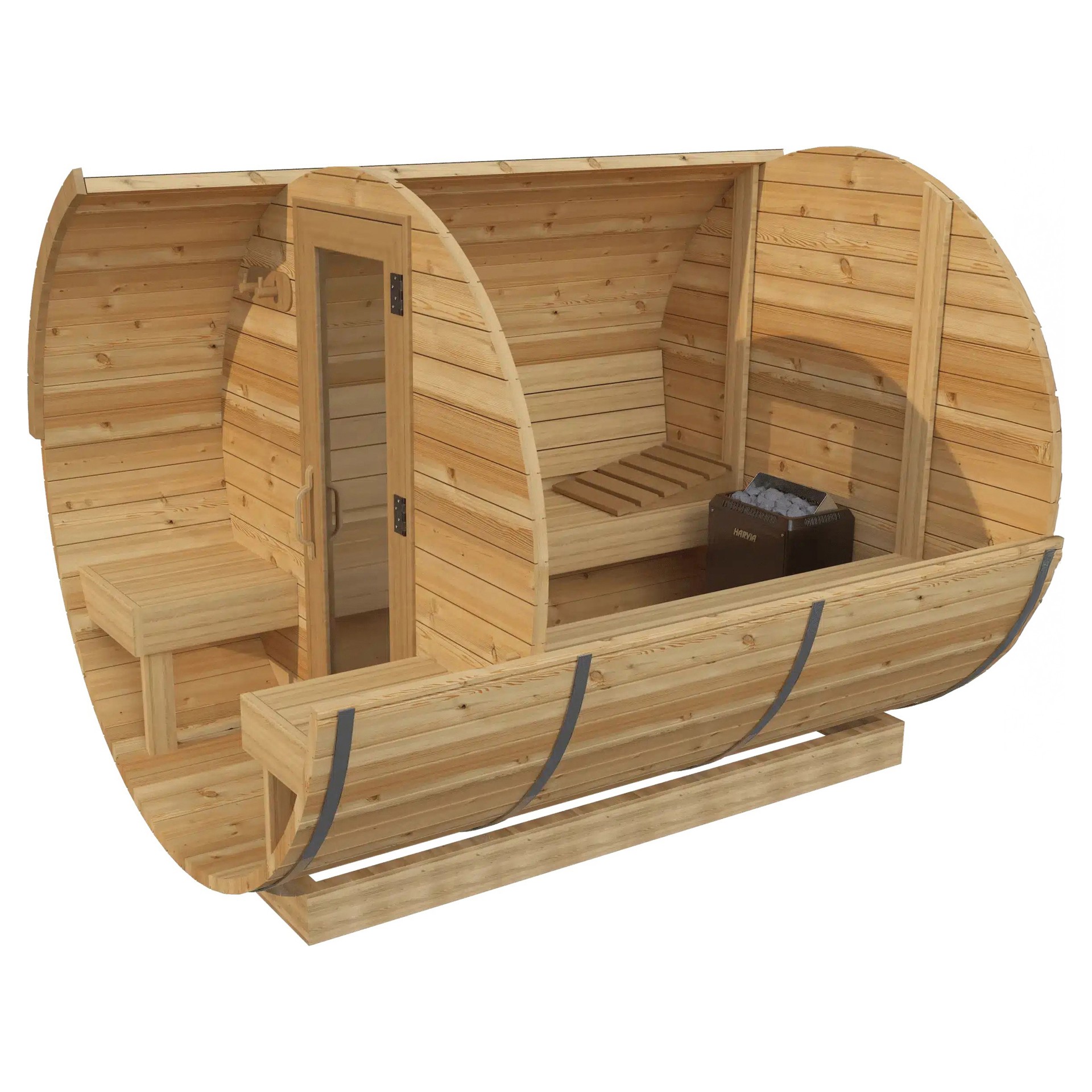 The red cedar barrel sauna with 1.5” thick planks is a true handcrafted marvel. This sauna is the result of traditional craftsmanship, combined with a sleek, modern aesthetic. The red cedar used to create this sauna is a highly weather-resistant wood, making it perfectly suited for outdoor use.