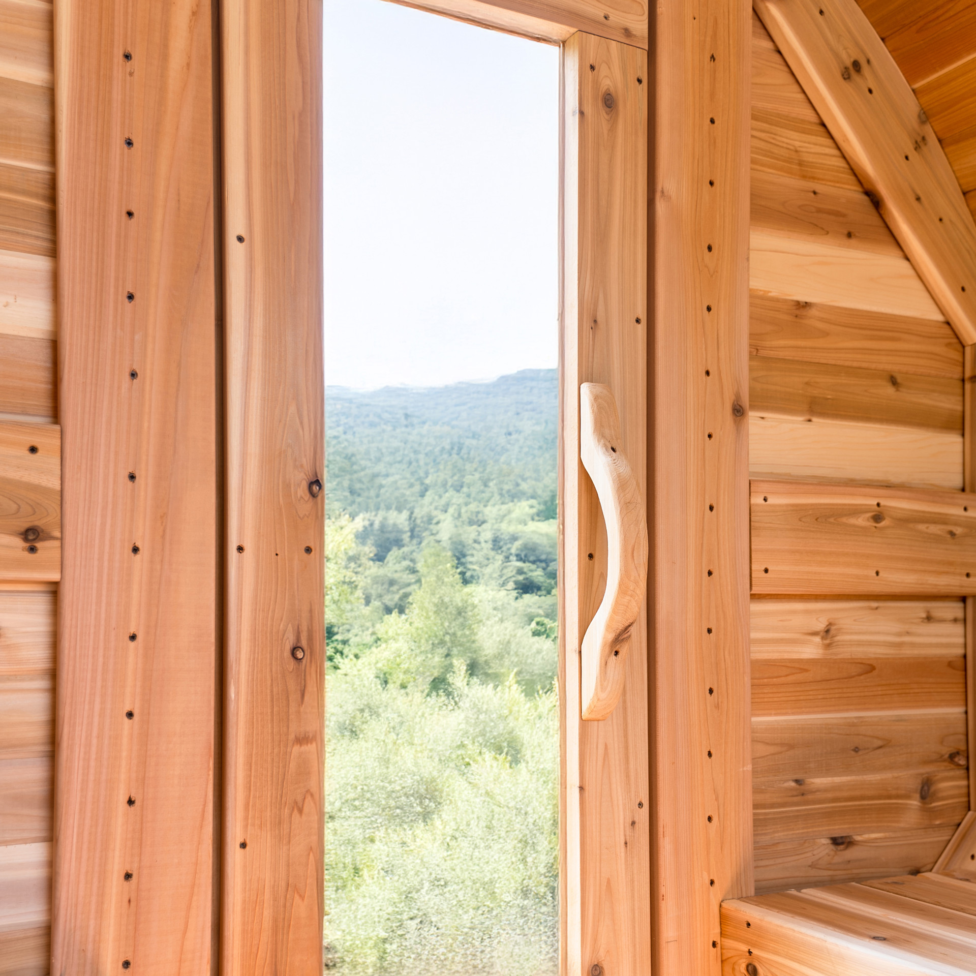 The red cedar barrel sauna offers an authentic sauna experience, with embracing warmth and a natural woody scent that stimulates the senses. The 1.5” thick plank surface offers high resistance to humidity, while maintaining constant heat in the interior of the sauna.