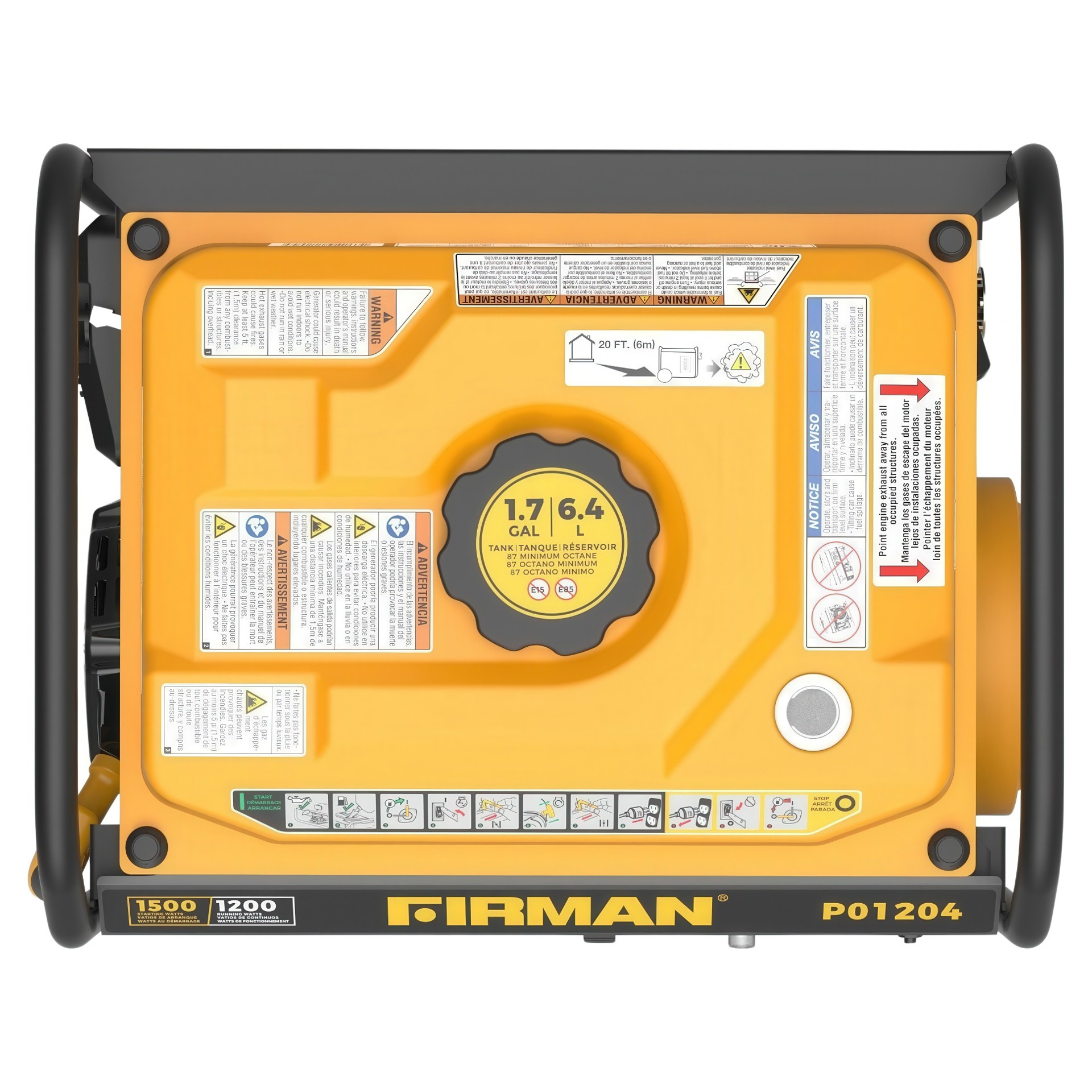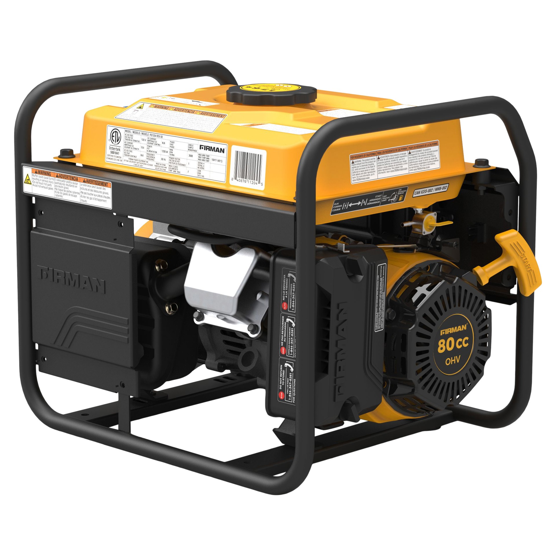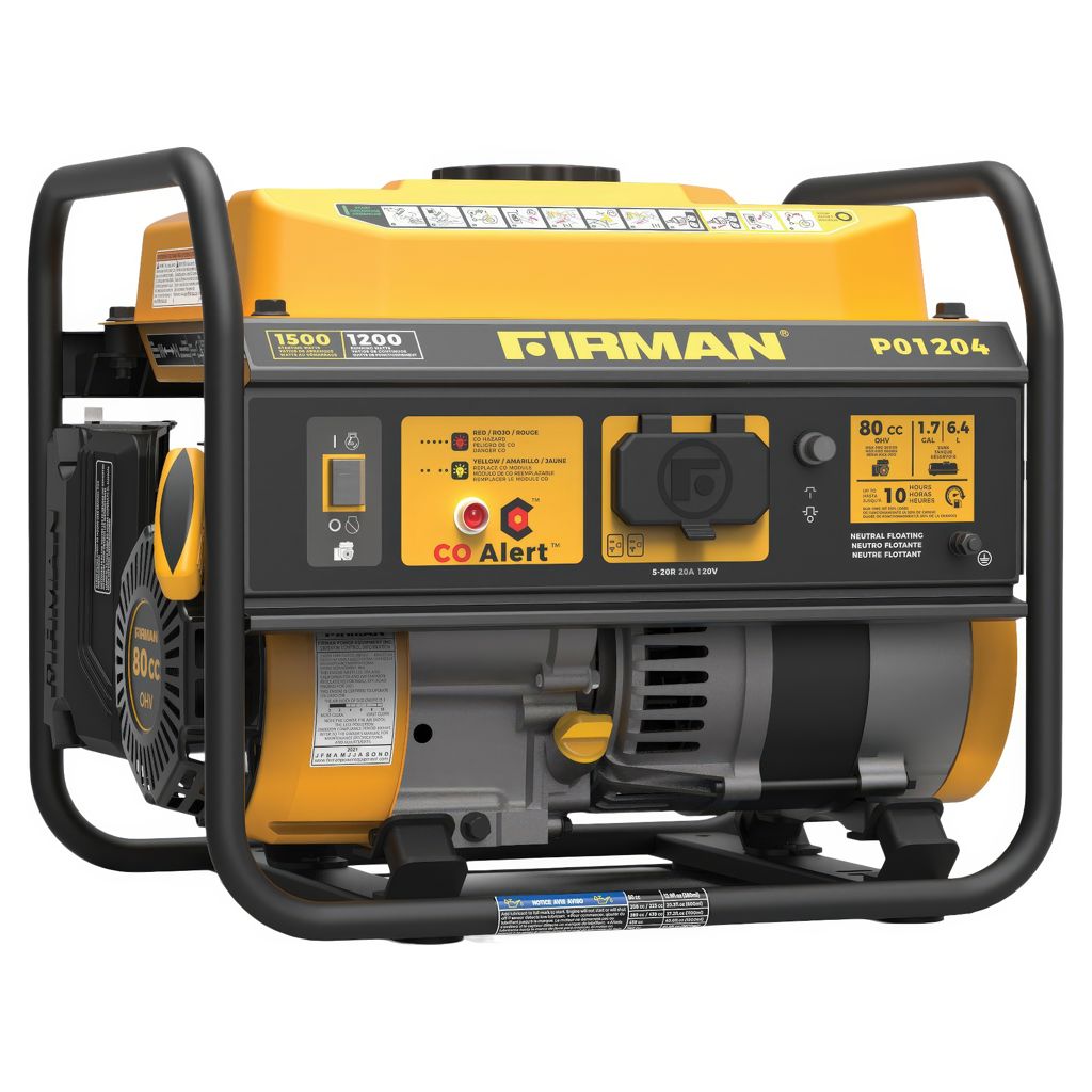 Known for its lightweight design and ease of use, the FIRMAN P01204 portable gasoline generator offers 1,200 watts of running power and 1,500 watts of starting power, and is the ideal companion for those on the go.