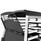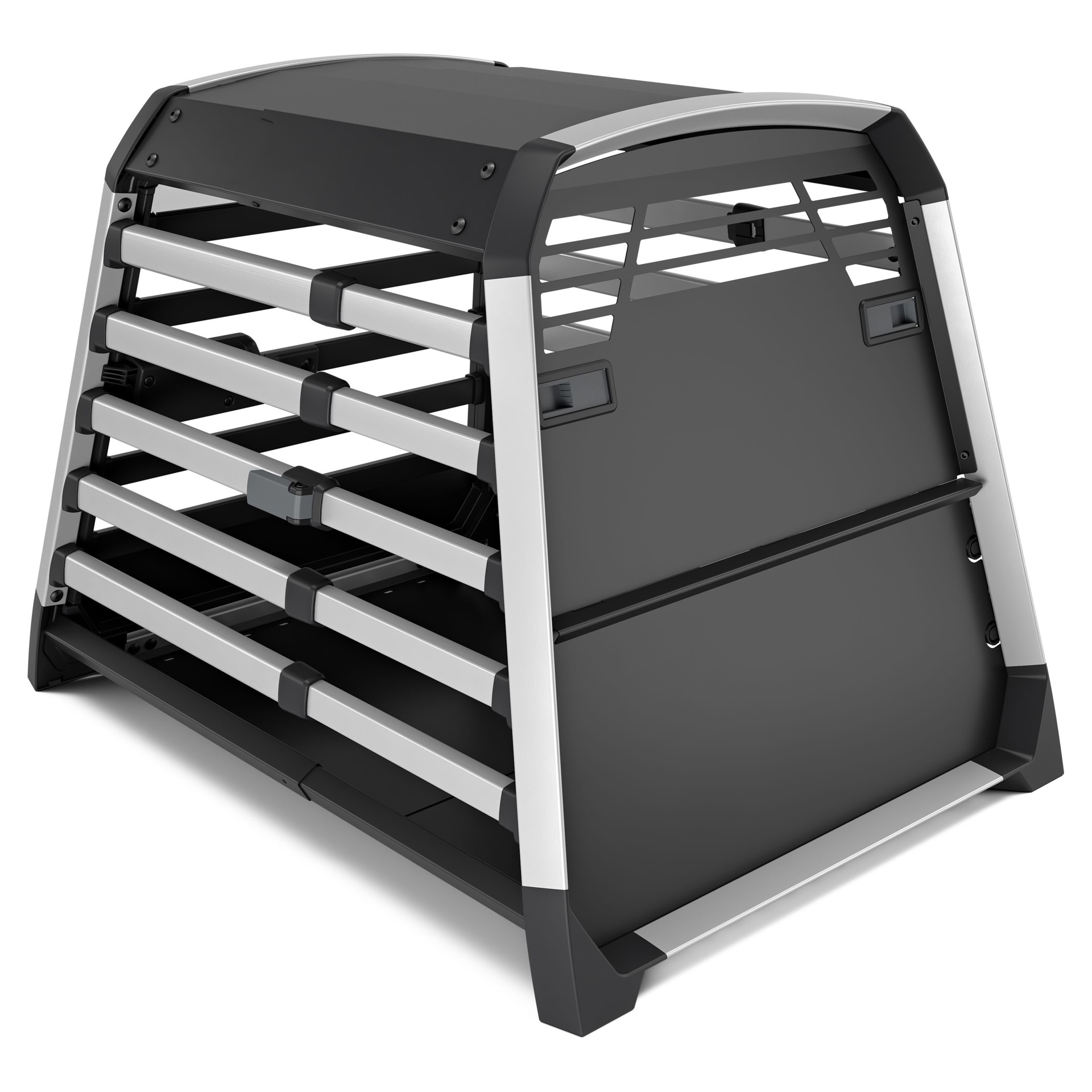 The dog crate comes in five to ten different sizes (depending on market), all with rounded edges to provide a perfect fit for both your car and your dog. Plus, the dog travel crate can be adjusted in depth for a perfect fit in your trunk, and tension bands ensure that it stays securely fastened while driving. Well-designed and well-built – no noise or rattle will come from this premium dog crate.