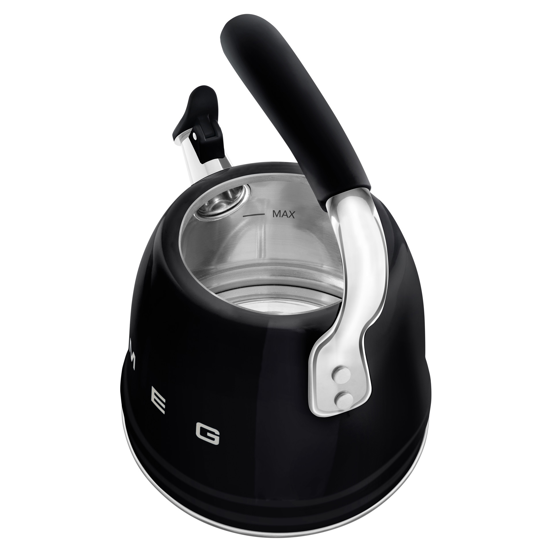 • Non-drip fixed spout with single-color whistle and easy-open flip-up spout cap