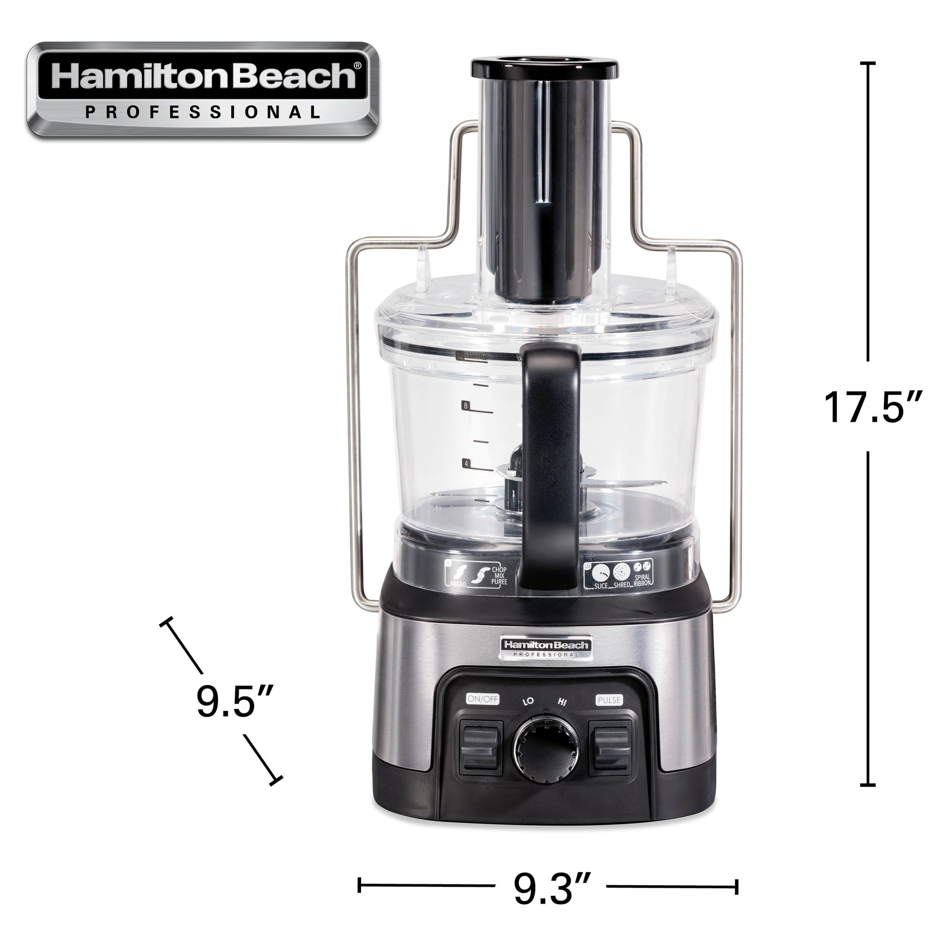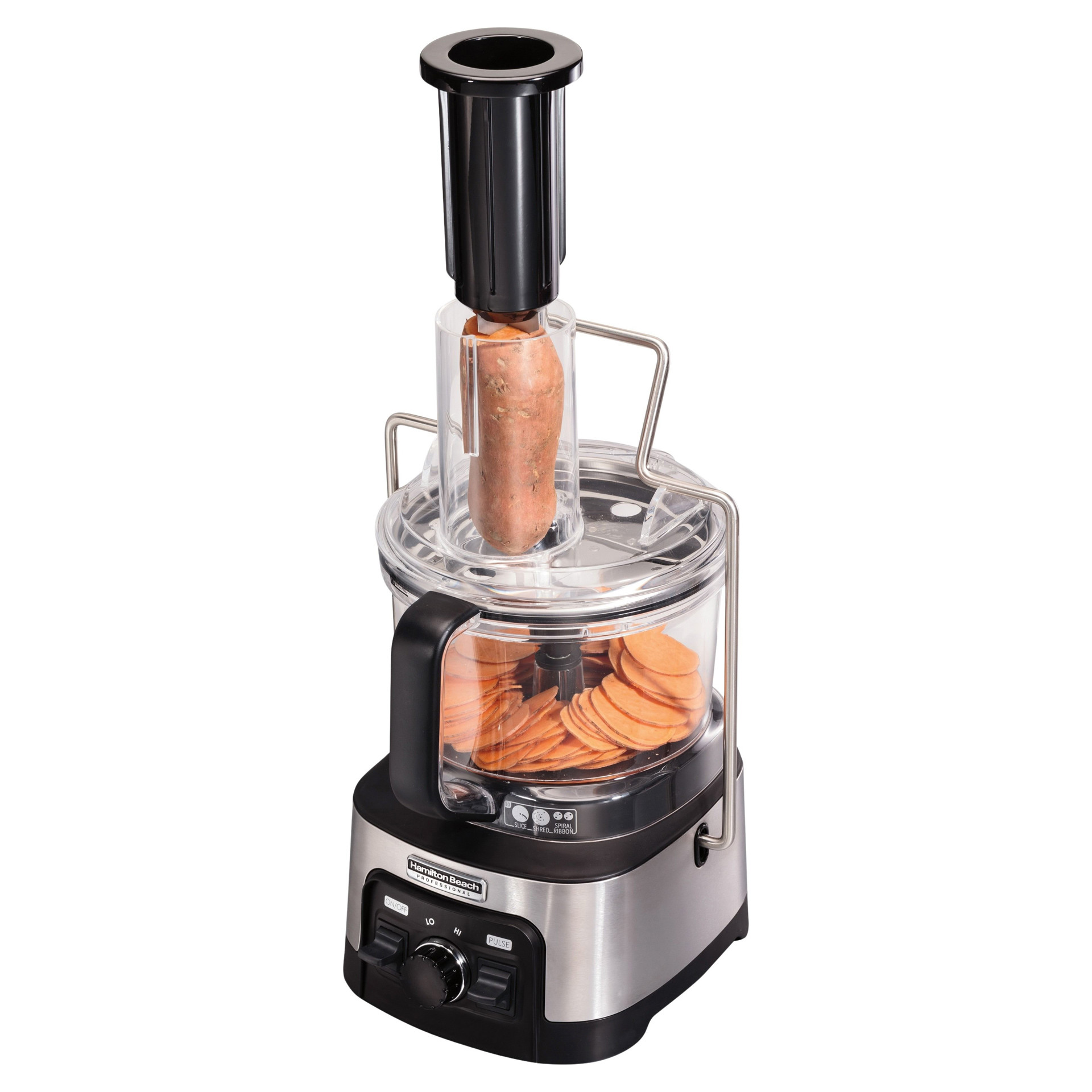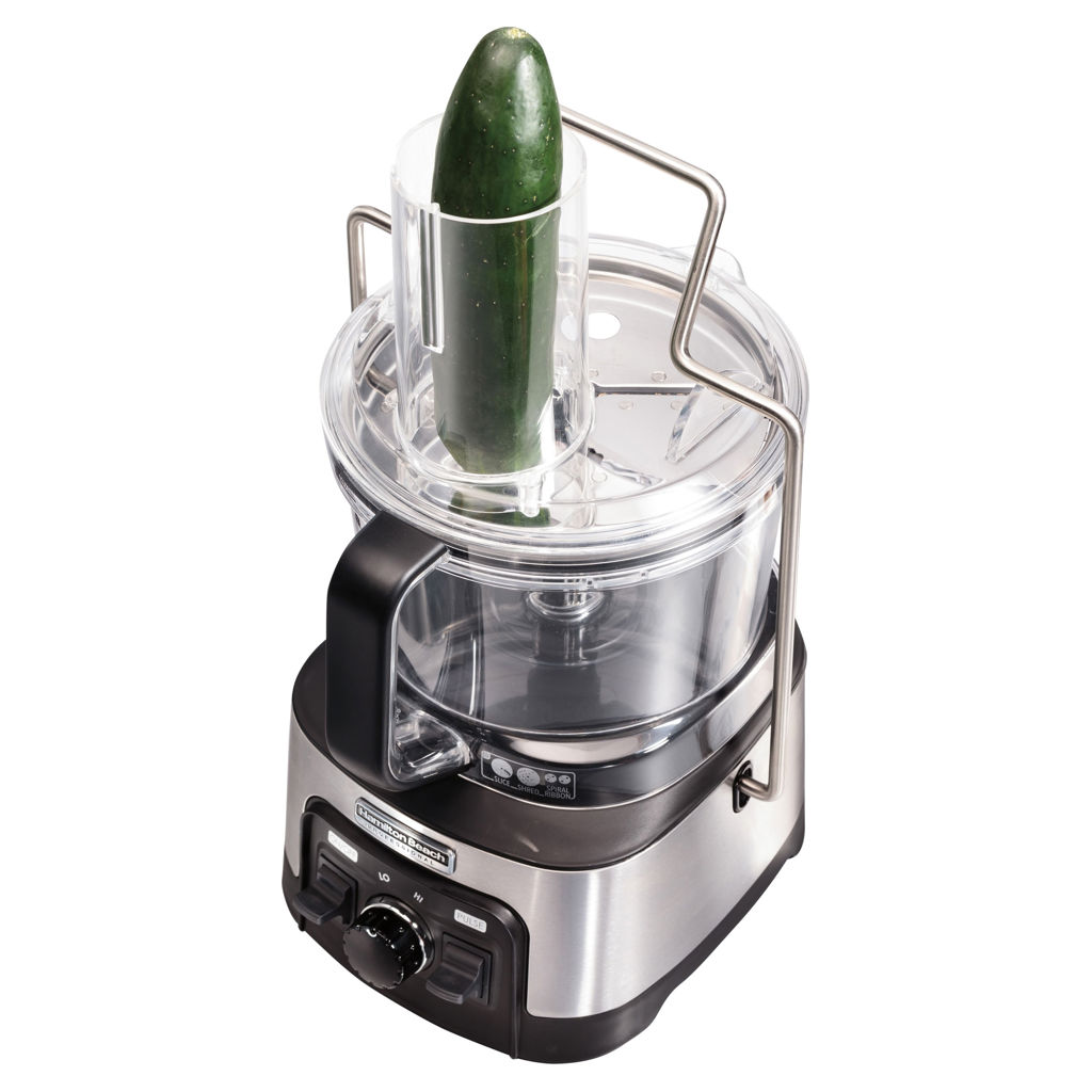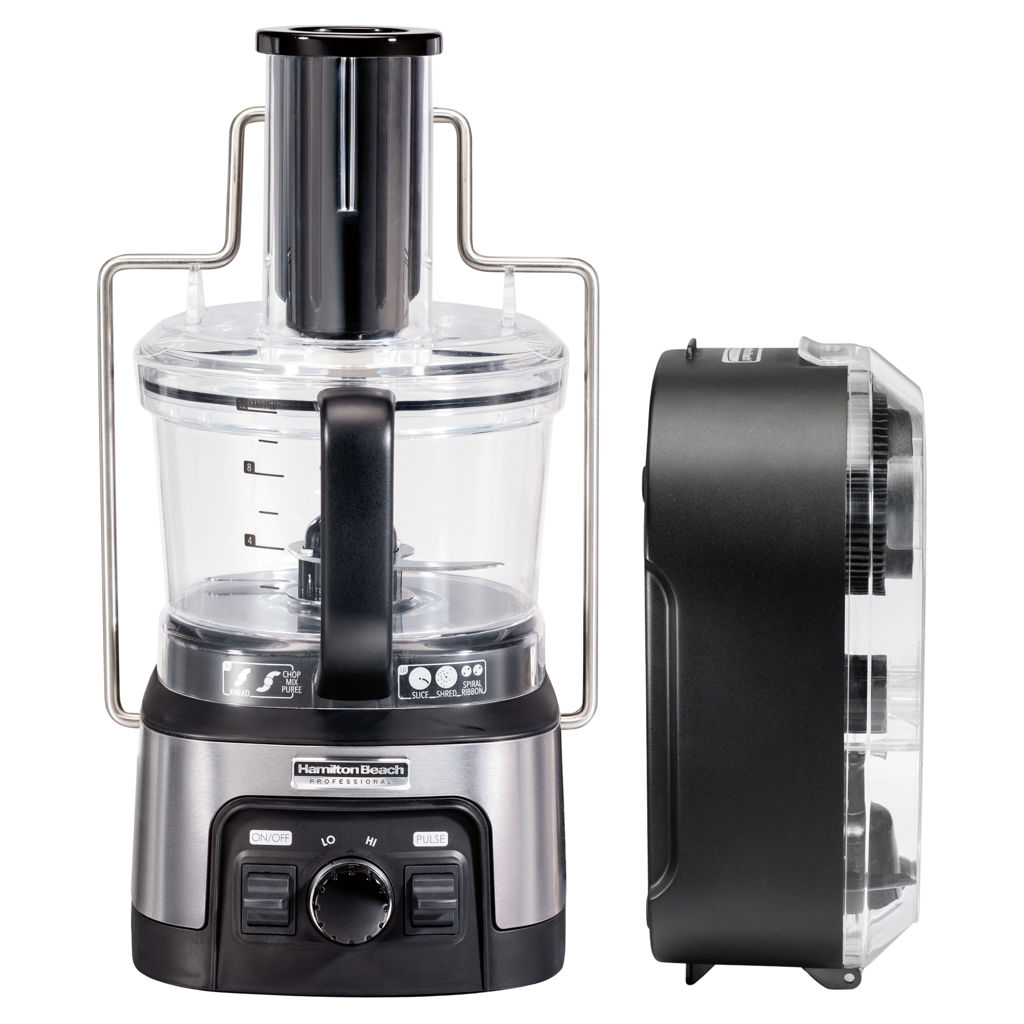 The Hamilton Beach® Professional Spiralizing Stack & Snap™ Food Processor comes with 6 versatile attachments to spiralize, slice, shred, chop, puree, and knead. Turn vegetables into thin noodles or wide ribbons for delicious sides, or replace pasta in your favorite recipes.