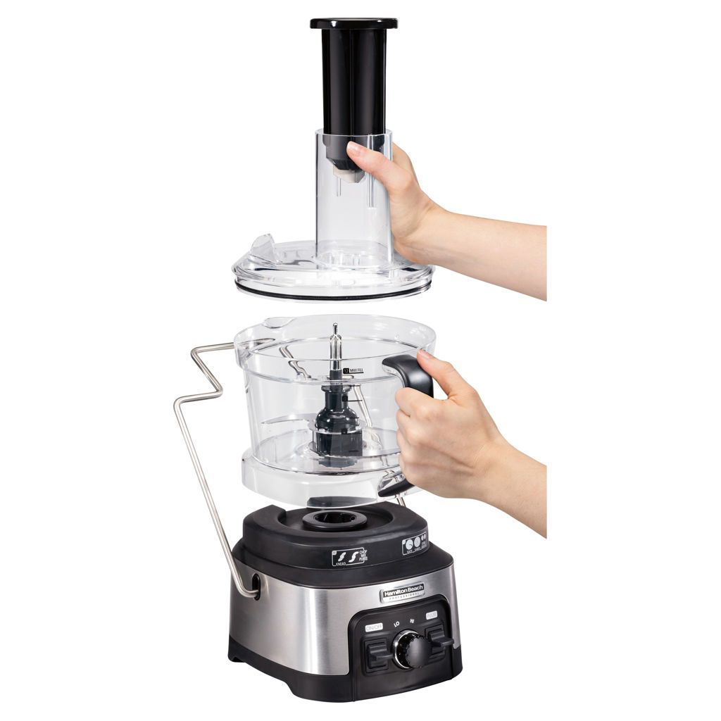 Thanks to its unique design, the Hamilton Beach food processor doesn’t require twisting or complicated locking. The bowl easily snaps onto the base, and a metal locking arm secures the lid.