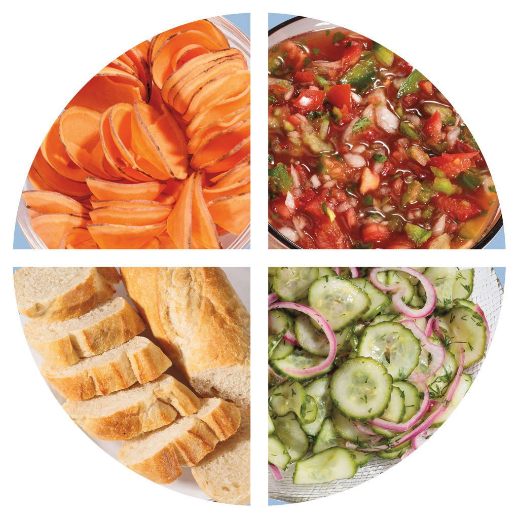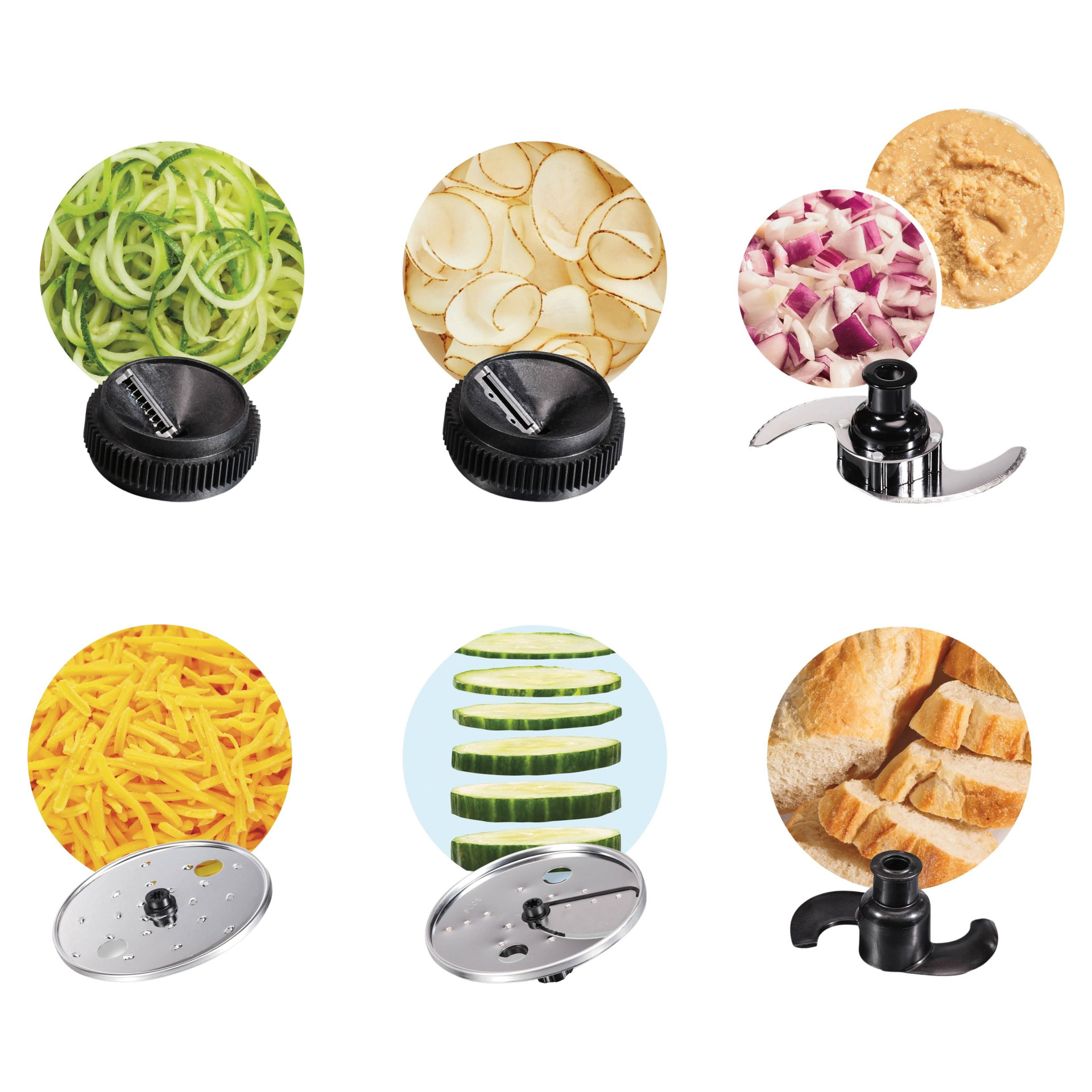 - Spiralize noodles and ribbons, slice thick to thin, shred fine or coarse, chop, puree, and knead