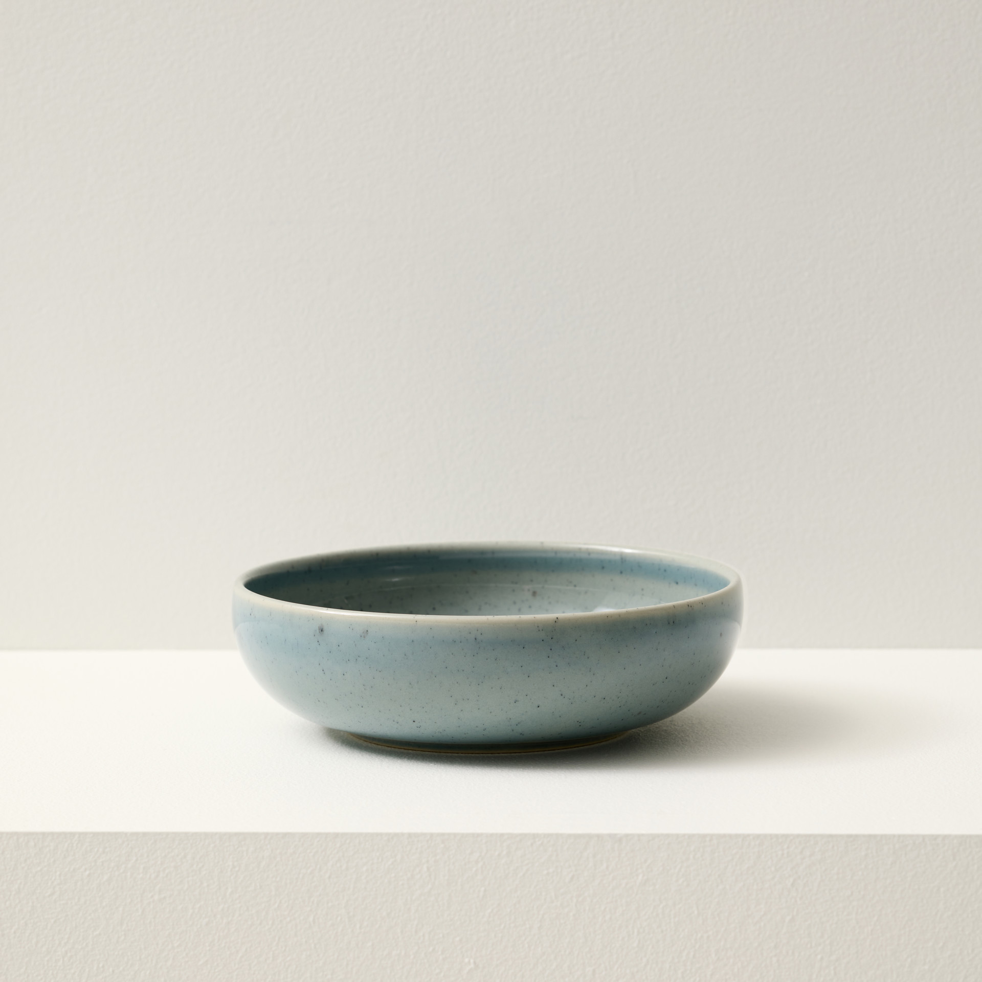 For a modern look, serve a variety of dishes in the Uno Speckle Blue stoneware bowl. Stoneware is a type of dinnerware, made of clay that is fired at a high temperature until it has the consistency of glass. This results in a very strong material with a stone-like look and quality. This bowl is colored in a pleasant blue hue, fading at the rim, and decorated with understated black speckles.