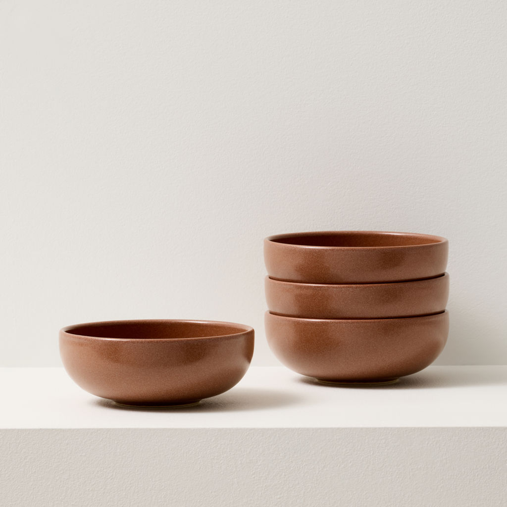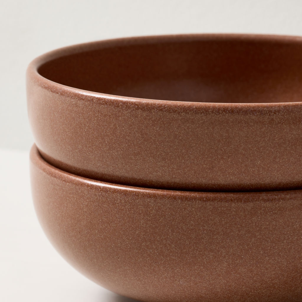 The Uno stoneware collection in leather tone pairs beautifully with rustic or café-bistro décor. Stoneware is made from clay fired at a high temperature until it reaches a glass-like consistency, resulting in a material that looks and feels like stone. These bowls are available in several colors.